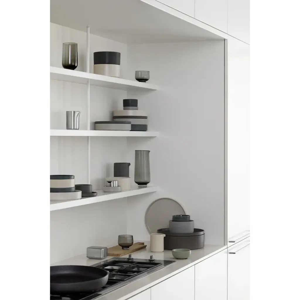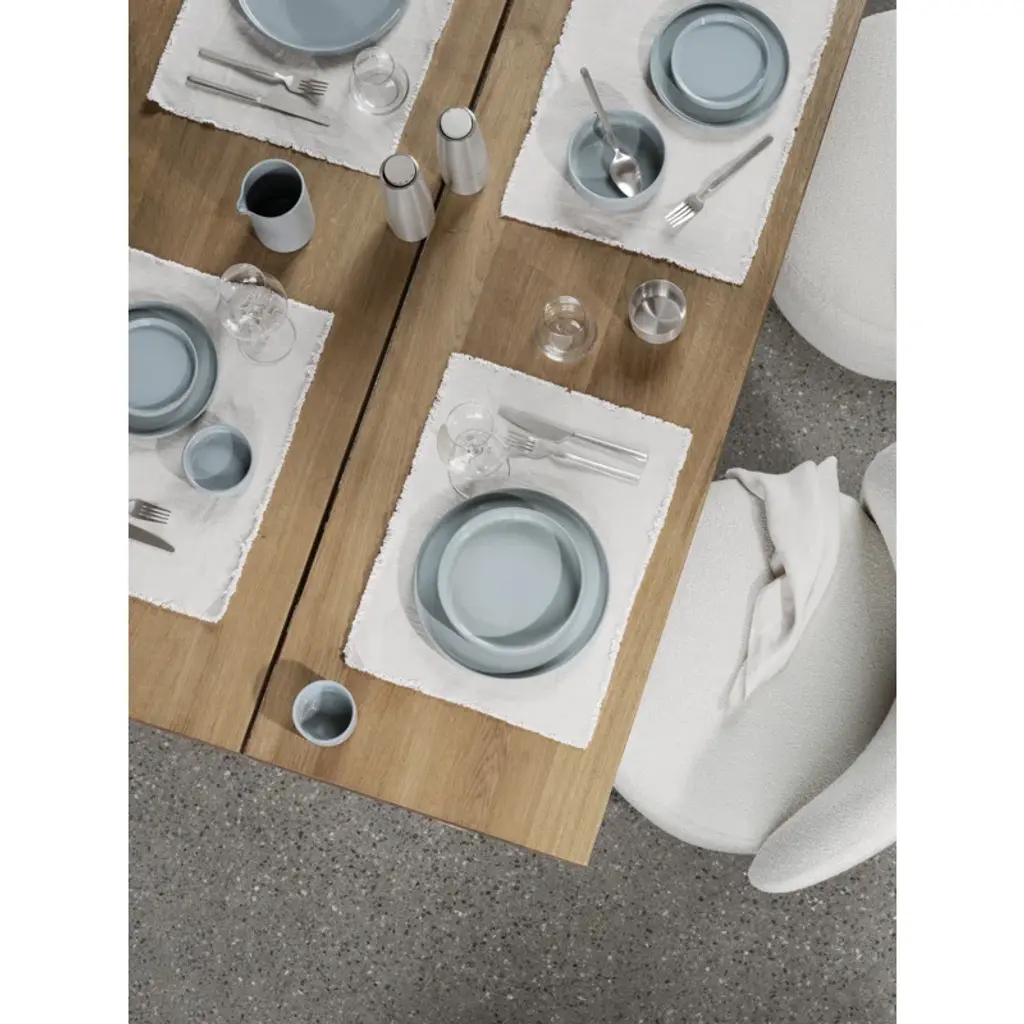 Clean eating. This dessert plate features a raised lip that’s designed to help it stack neatly, for tidier cabinets and minimalist open shelves. Crafted from dishwasher-safe stoneware, it’s glazed inside and matte outside, emphasizing its organic texture while staying easy to wash. Set of four.