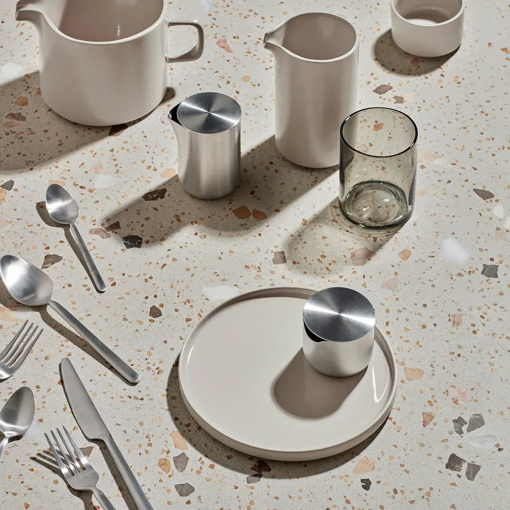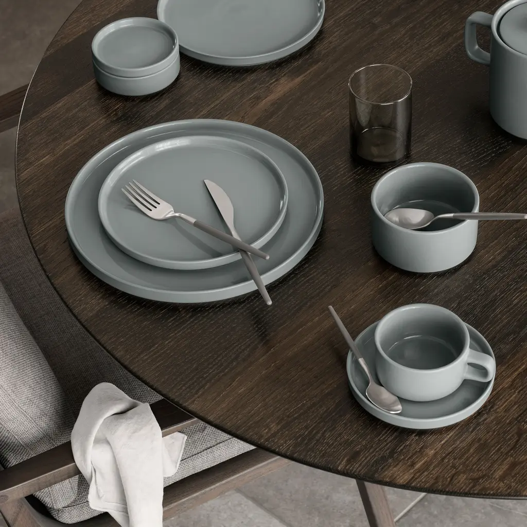 Enhance your dining experience with the sophisticated Pilar Stoneware Dessert Plates. Crafted by the German studio Floz Design in collaboration with Blomus, the Pilar collection epitomizes minimalist elegance and remarkable adaptability. These plates seamlessly complement any interior design while allowing the food to be the main focus. Constructed from stoneware, a material more robust than clay and less transparent than porcelain, the Pilar plates showcase a matte finish on the exterior and a glossy interior surface. This glazed finish ensures effortless cleaning. Offered as a set of 4, the Pilar stoneware plates are available in snack, dessert, and dinner sizes. Each plate is designed for easy stacking in storage.