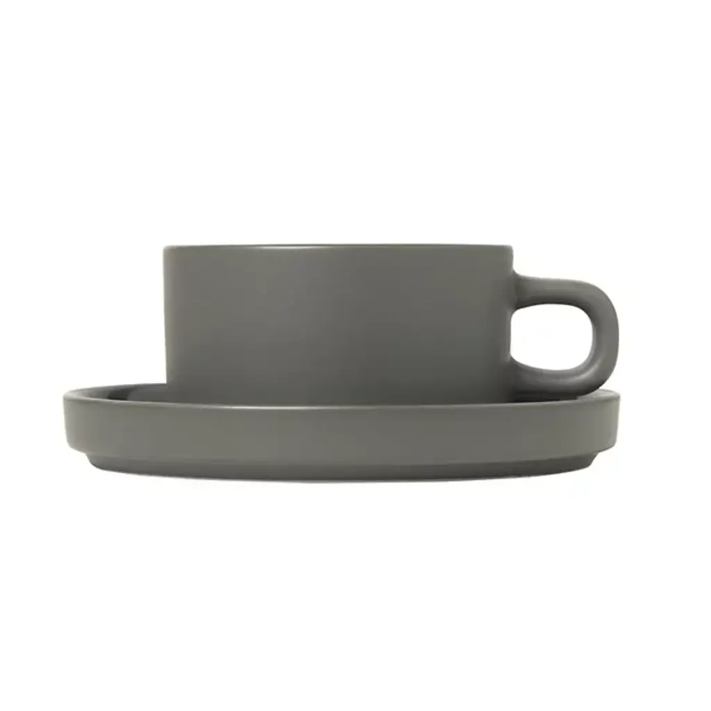 Make your tea time truly enjoyable with the PILAR Tea Cups With Saucer Set of 2 from Blomus. Its neat design and refined appearance complement modern and traditional dining arrangements. The cup and saucer are made in stoneware, making it easy on the eyes and a breeze to clean. It's a piece that makes each sip truly soothing and refreshing.