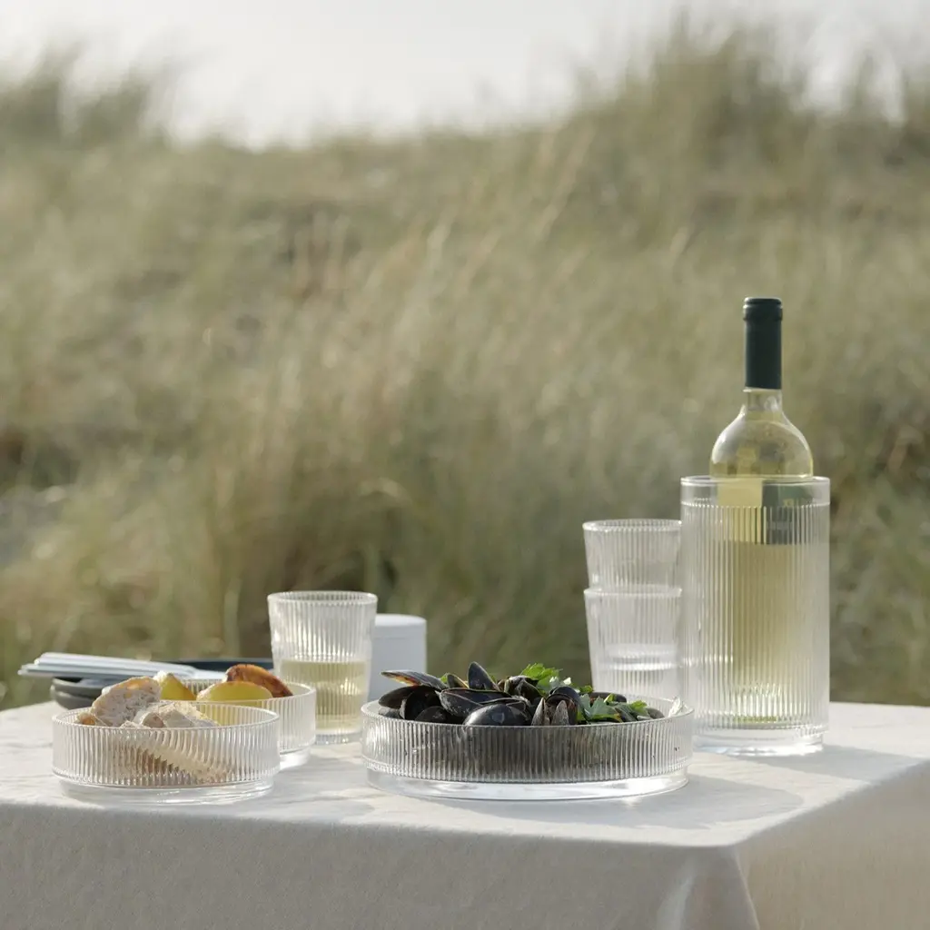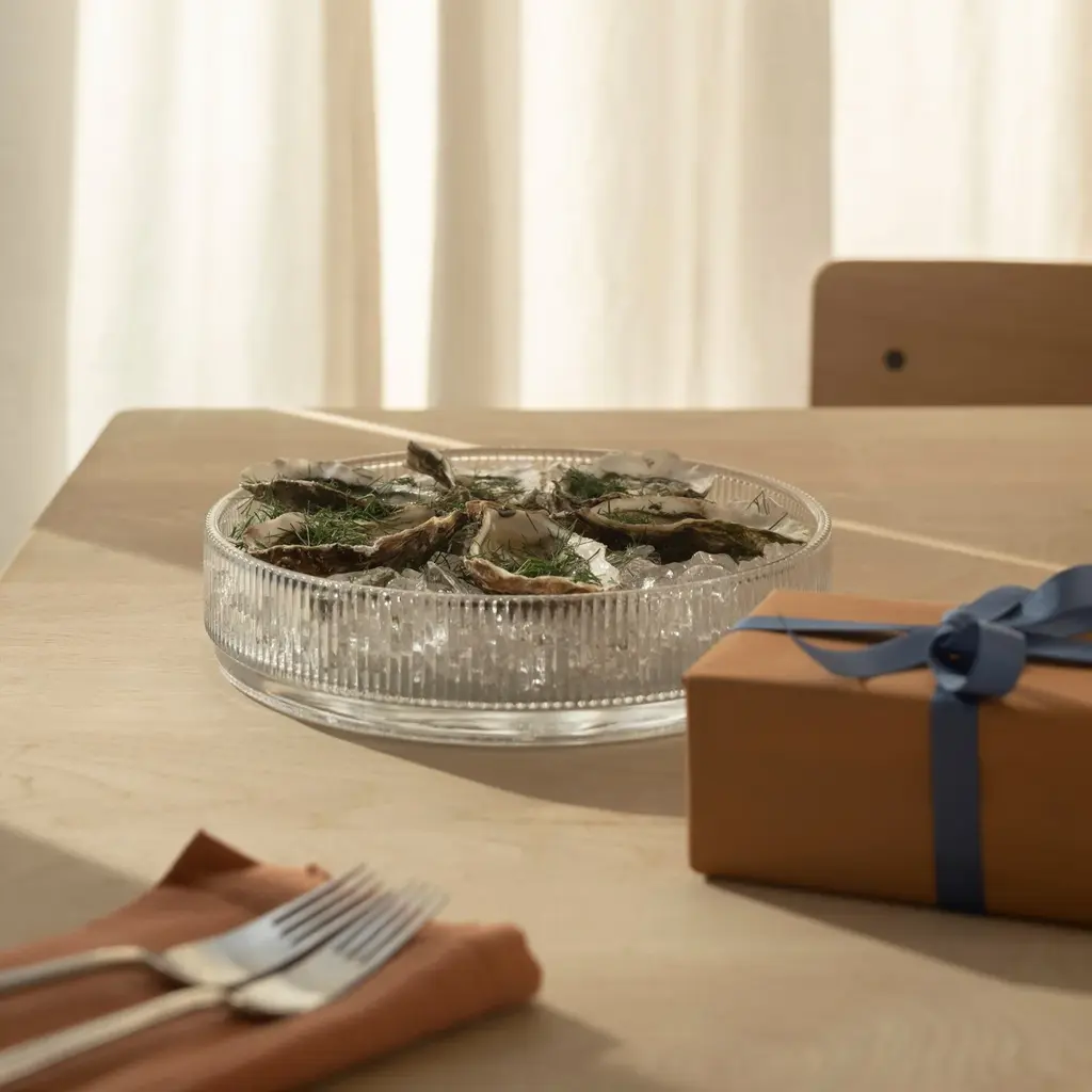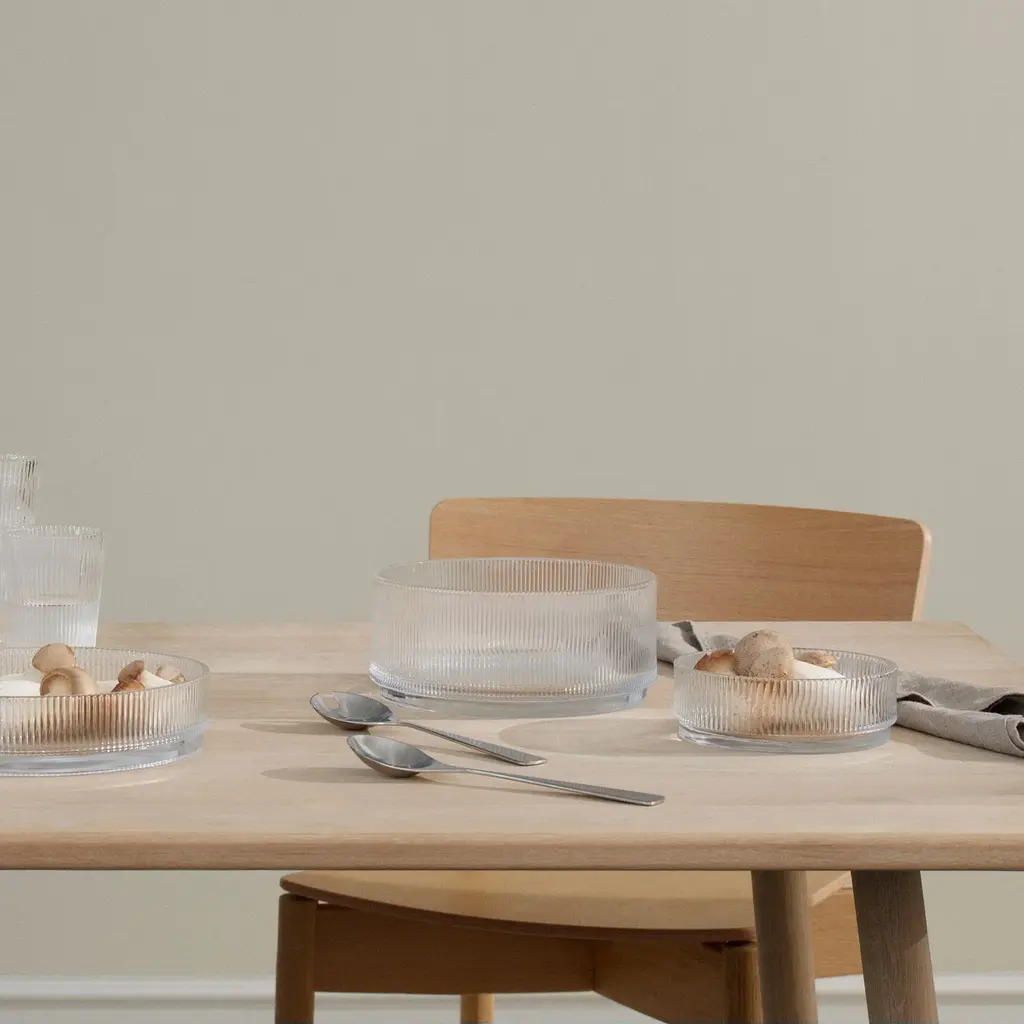 Upgrade your dinnerware with the luxurious Pilastro Salad Bowl from Stelton. Its contemporary art deco-inspired design features a ribbed glass composition, perfect for adding sophistication to any modern interior. Stackable for easy storage, this bowl is also a great choice as a decorative centerpiece or for serving pasta and fruit. Highlights