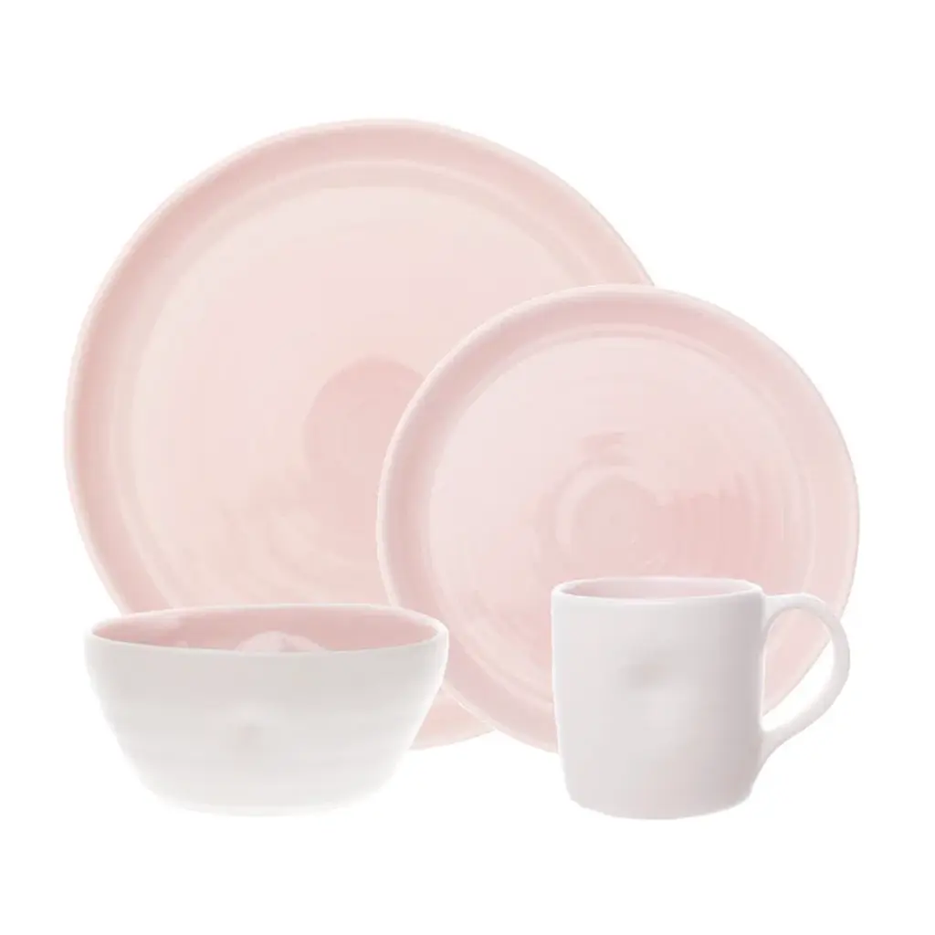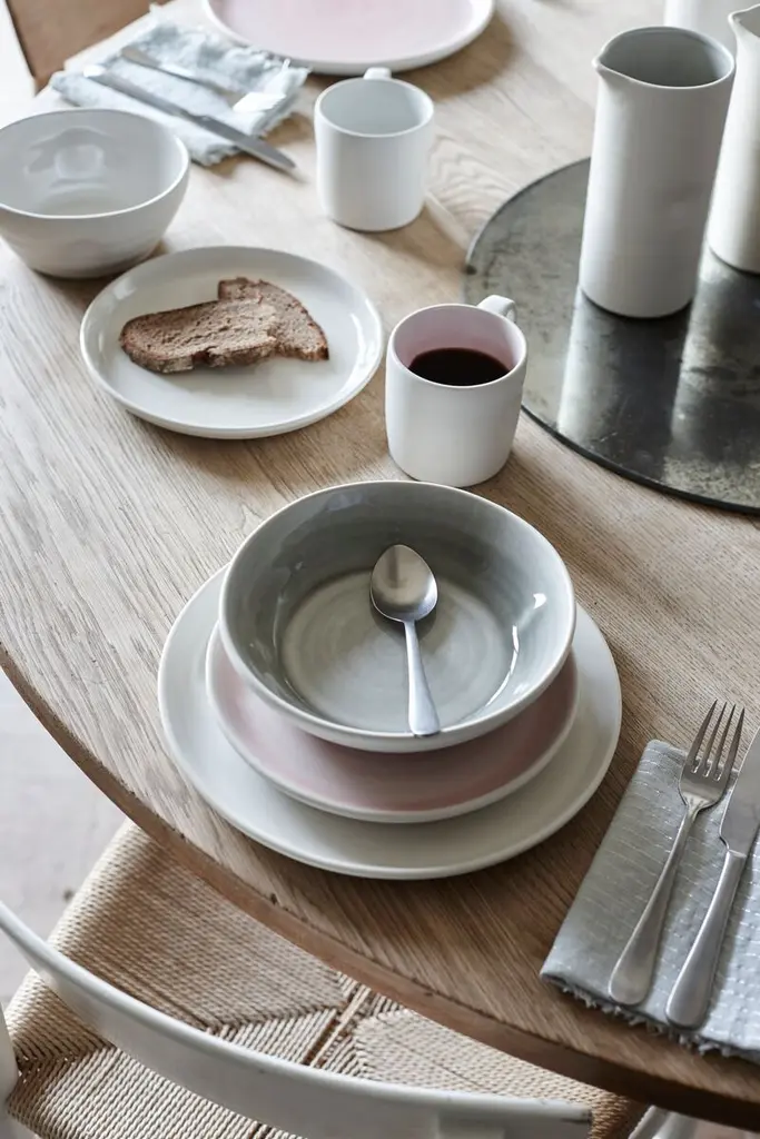 Working with both Linda Bloomfield, one of the UK’s most respected potters and author of numerous books on glazes, and a well-respected, small-scale ceramics factory in Portugal, we have arrived at a collection that combines the expertise of all collaborators: a unique vision of simplicity and clean form; an incredibly subtle color palette only possible because of Linda’s mastery of glazing possibilities, and our Portuguese partner’s expertise in applying studio glaze recipes in a factory setting. The result is an achievement in timeless dinnerware. Microwave and Dishwasher Safe. Stoneware. Made in Portugal. Place-setting includes 1 dinner plate, 1 salad plate, 1 cereal bowl, and 1 mug. Service for 1. Dinner Plate: 10.75"D; Salad Plate: 8.5"D; Cereal Bowl: 6.25"D x 7.75"H, 32oz Capacity; Mug: 3.5"D x 3.5"H, 11.5oz capacity.