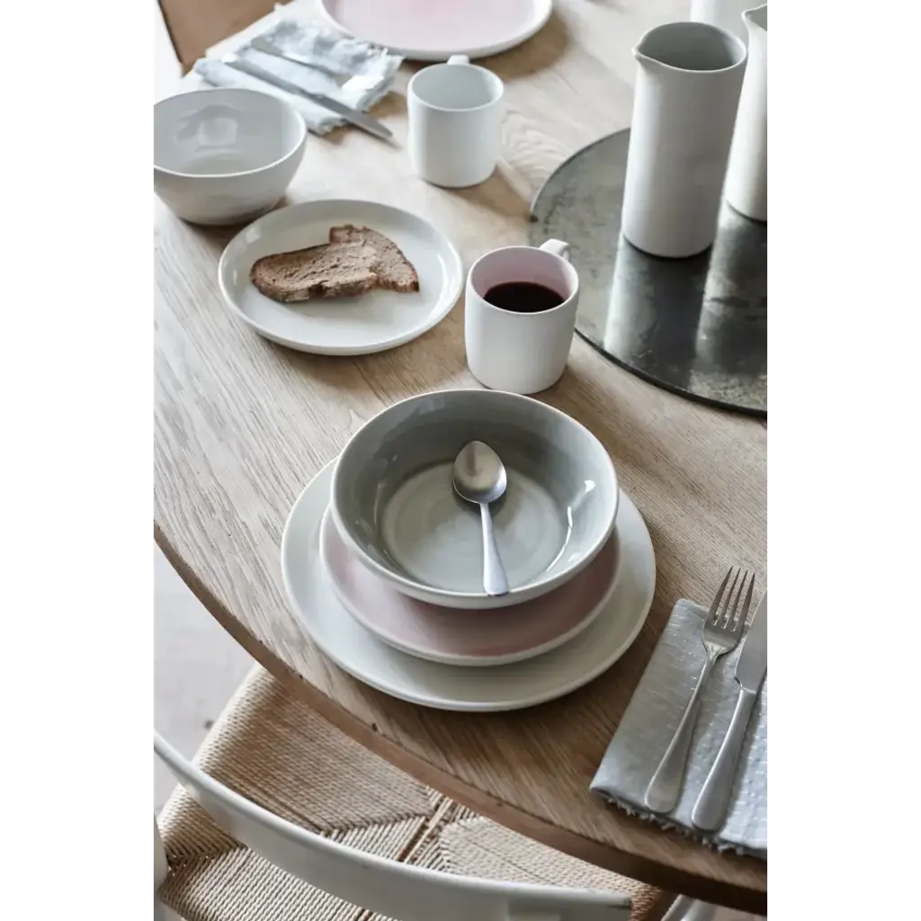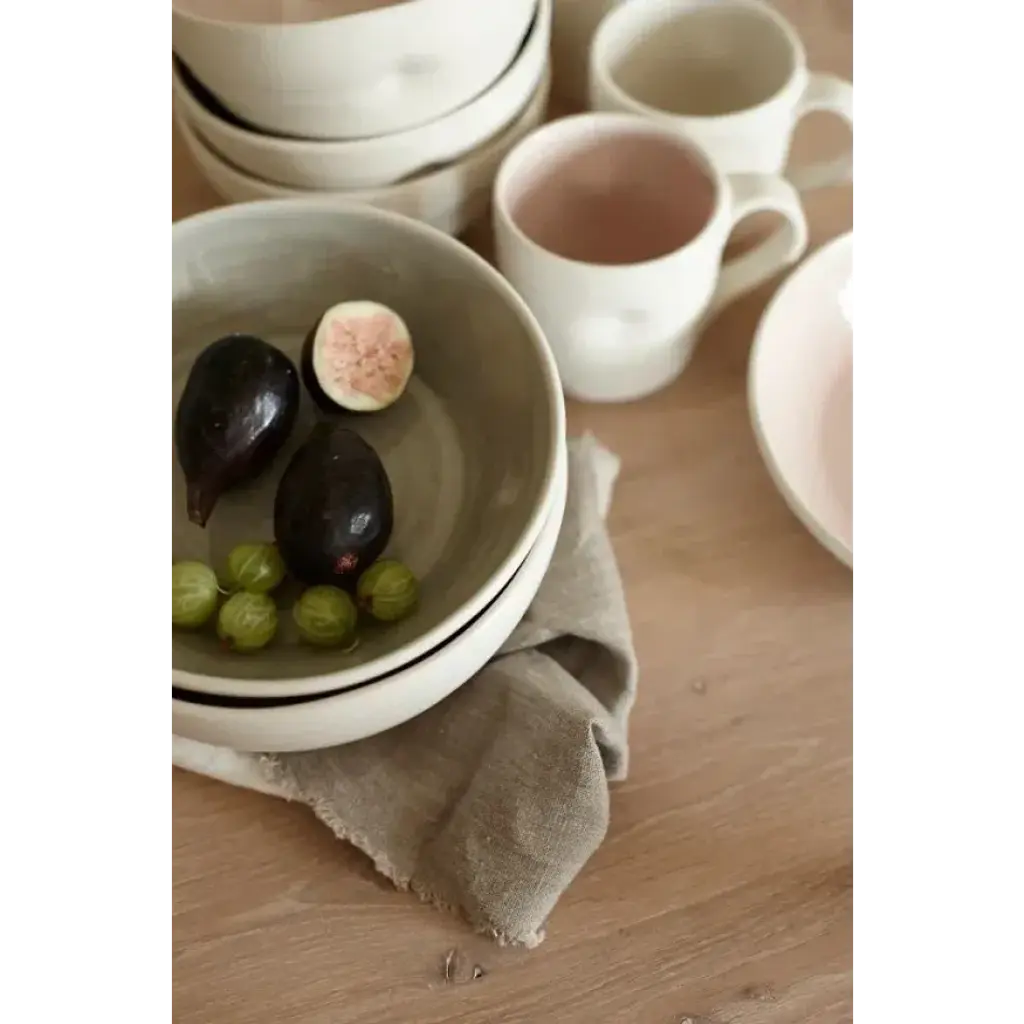 Working with both Linda Bloomfield, one of the UK's most respected potters and author of numerous books on glazes, and a well-respected, small-scale ceramics factory in Portugal, we have arrived at a collection that combines the expertise of all collaborators. Canvas Home's unique vision of simplicity and clean form; an incredibly subtle color palette only possible because of Linda's mastery of glazing possibilities, and our Portuguese partner's expertise in applying studio glaze recipes in a factory setting. We hope you agree that the result is an achievement in timeless dinnerware.