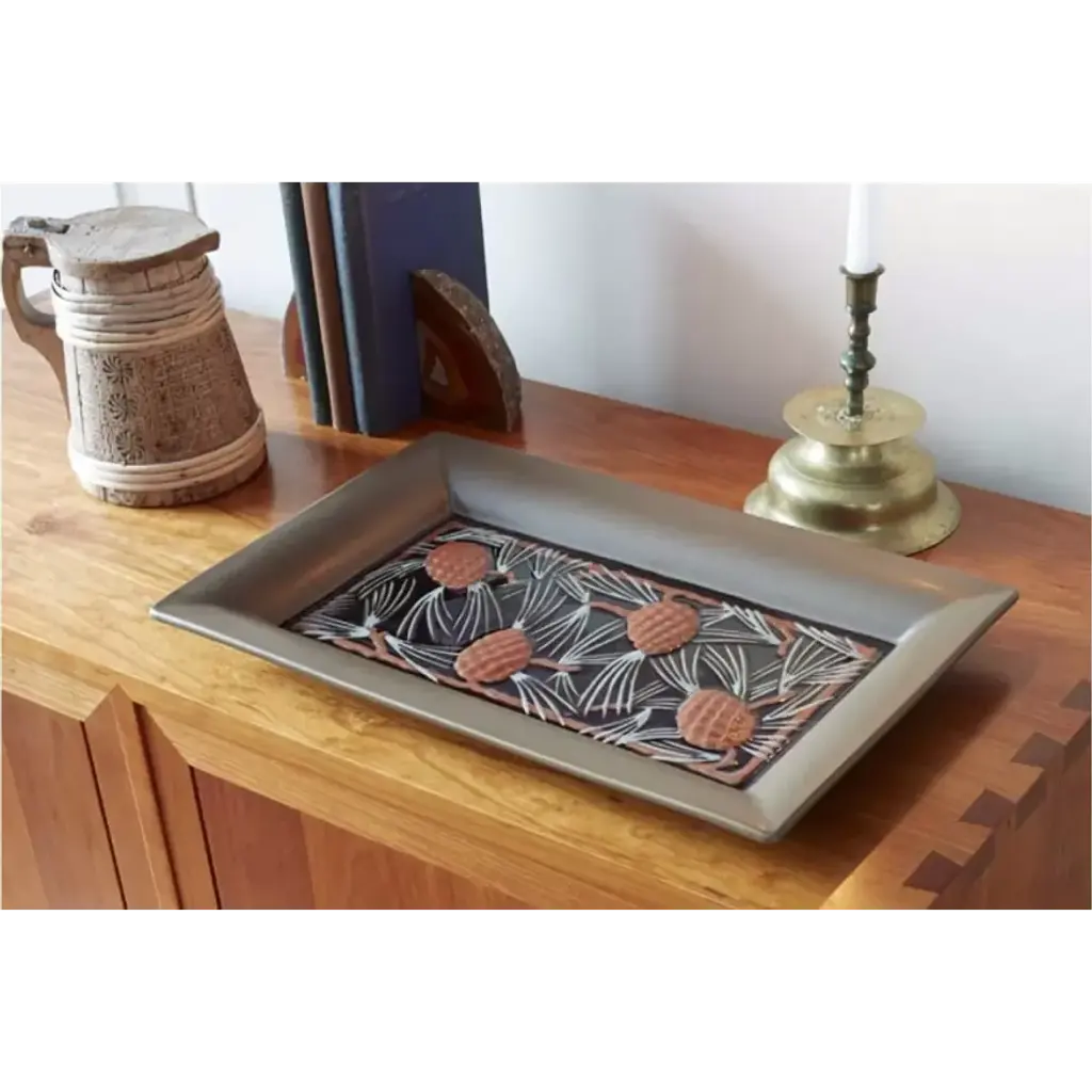 Pine Cone Rectangular Platter, Salmon & Brown 19"x12"