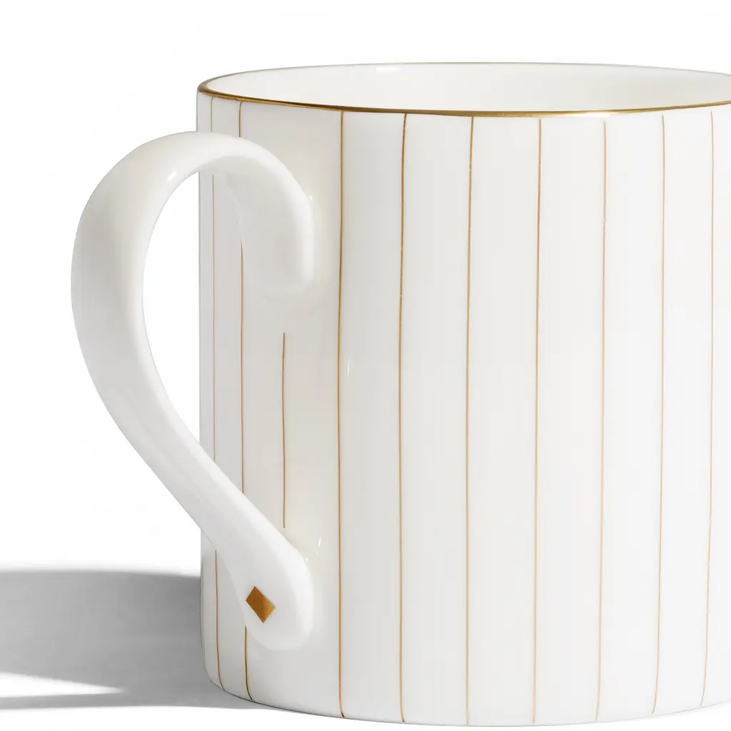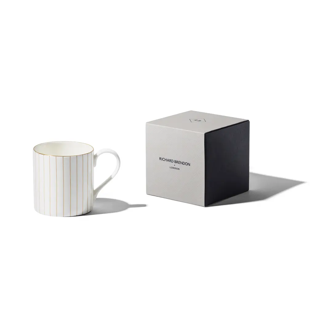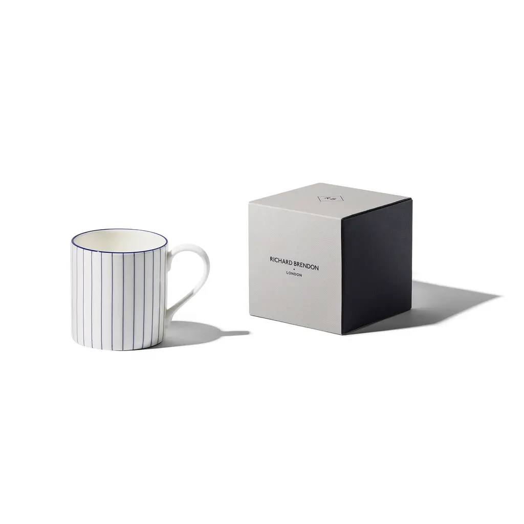 Inspired by classic pinstripe patterns and elegant suits, this Richard Brendon mug brings more style to your daily coffee or tea drinking experience. Timeless and instantly recognizable, the thin lines adorn the Pinstripe Mug in cobalt or gold colors. Like other products from the brand’s collection, this one is skillfully handmade by experienced craftspeople who use traditional techniques to create every bone china mug. Featuring a brilliant white color as well as a subtly translucent surface, bone china is beautiful but also provides fantastic durability and chip resistance, making it a great choice for everyday use. The Richard Brendon Pinstripe Mug is conveniently microwave-safe as well as dishwasher-safe, at a washing temperature of up to 60°C or 140°F.