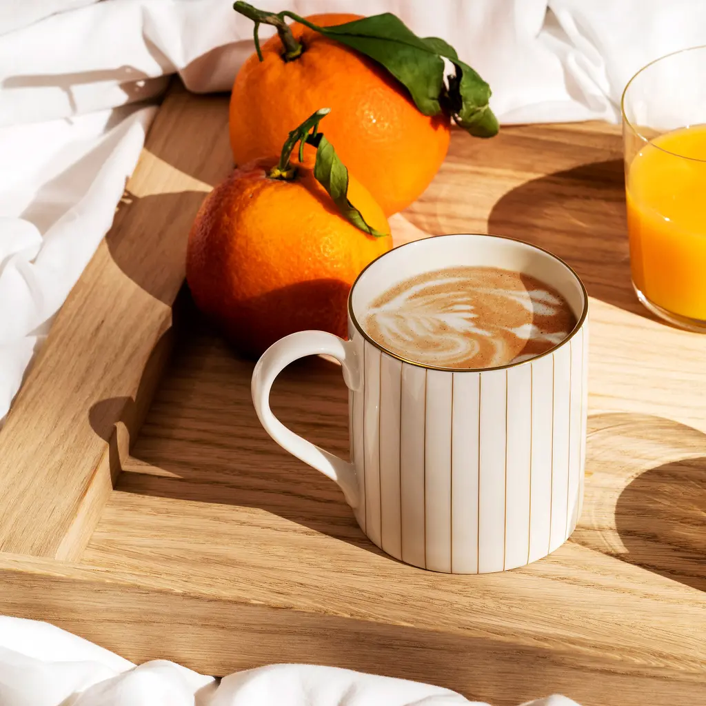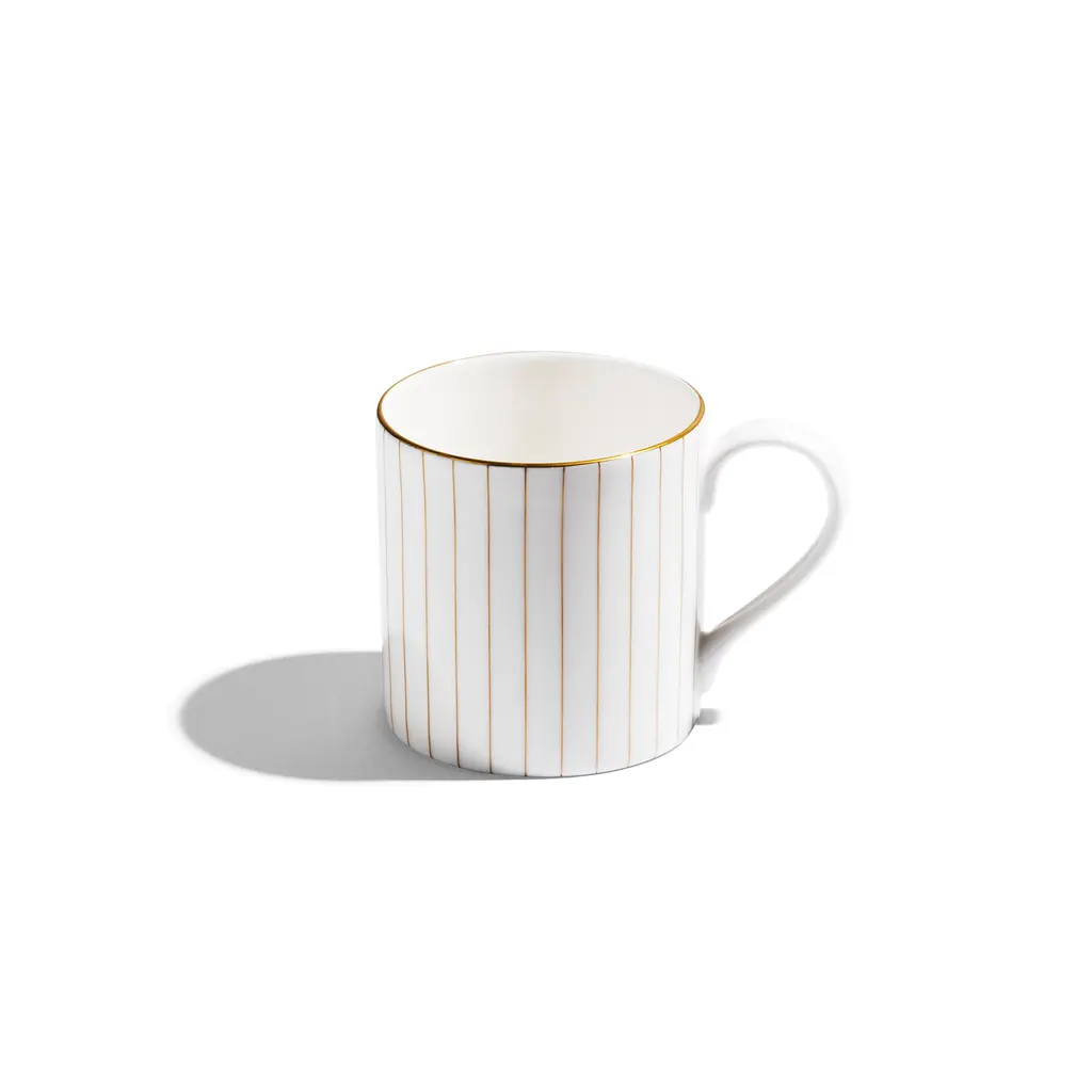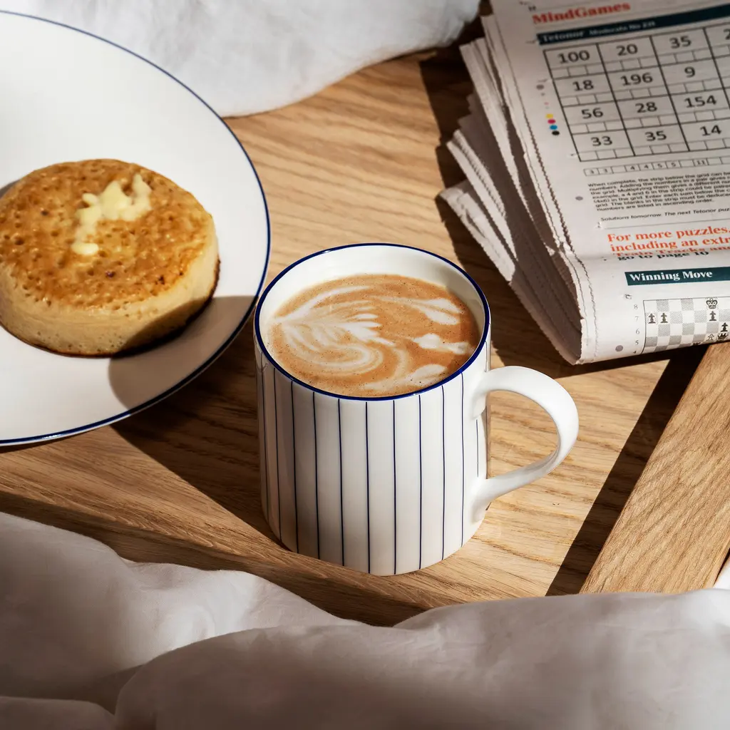 Inspired by classic pinstripe patterns and elegant suits, this Richard Brendon mug brings more style to your daily coffee or tea drinking experience. Timeless and instantly recognizable, the thin lines adorn the Pinstripe Mug in cobalt or gold colors. Like other products from the brand’s collection, this one is skillfully handmade by experienced craftspeople who use traditional techniques to create every bone china mug. Featuring a brilliant white color as well as a subtly translucent surface, bone china is beautiful but also provides fantastic durability and chip resistance, making it a great choice for everyday use. The Richard Brendon Pinstripe Mug is conveniently microwave-safe as well as dishwasher-safe, at a washing temperature of up to 60°C or 140°F.