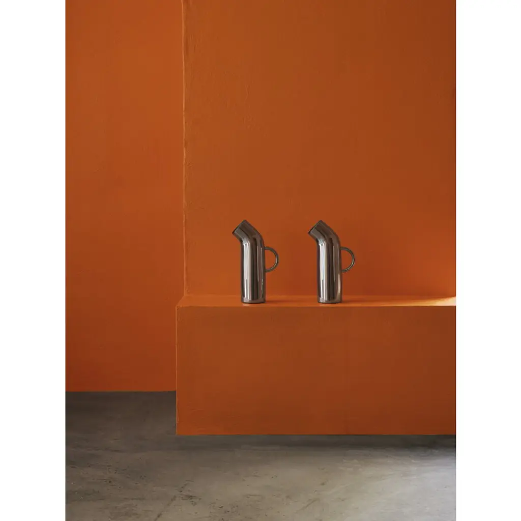 Normann Copenhagen's Pipe pitcher draws inspiration from Copenhagen's unique architecture and the silver-hued drainpipes of the elegant houses. Following the same functional form without compromising on esthetics, the tubular pitcher directs the drink perfectly and evenly into the glass. The stainless-steel jug is a simple but surprising addition to any table setting – and can also be used as a vase or decorative item.