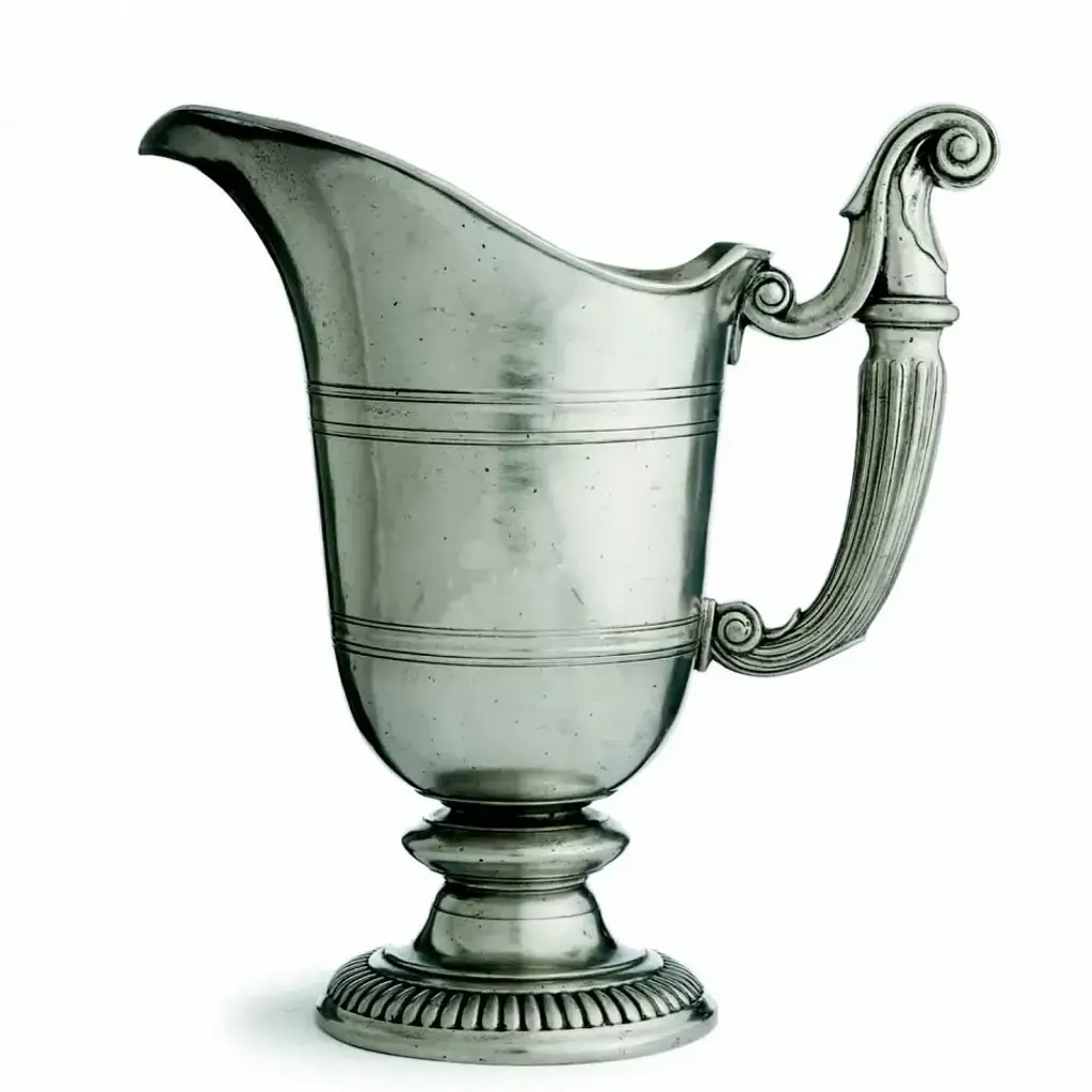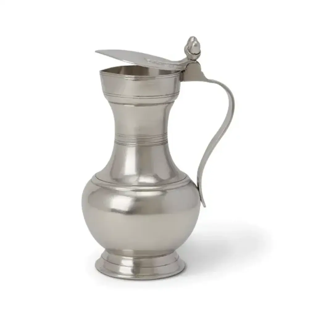 Just a touch of whimsy for your table or bar. This tall lidded pewter pitcher, with entwined acorns at the hinge, is a charming way to serve water or other beverages to your guests. When David Reiss - a graduate of the Rhode Island School of Design - founded MATCH in 1995, he introduced America to the beauty of Italian pewter. MATCH’s pewter, a valuable metal composed of tin, copper, and antimony, is handmade by artisans in Northern Italy. Each piece is made with an alloy that is food safe, lead free, FDA approved and requires very little care. Every piece of Match pewter is marked with the manufacturer's "M" hallmark as well the mark of tin content "95".