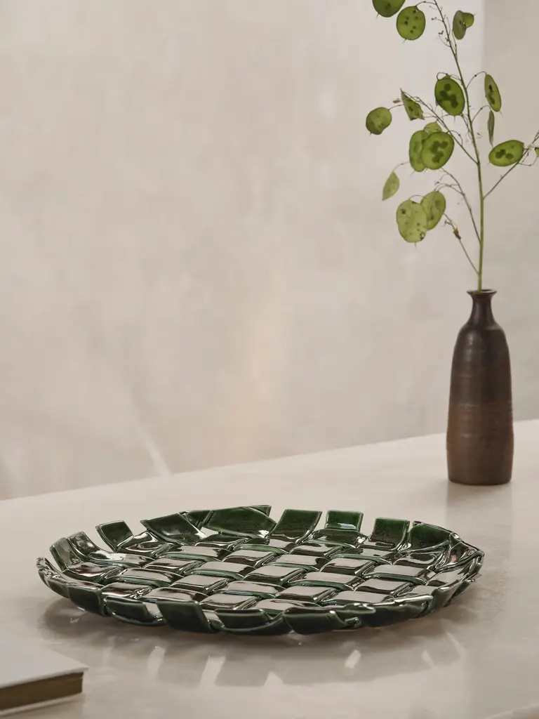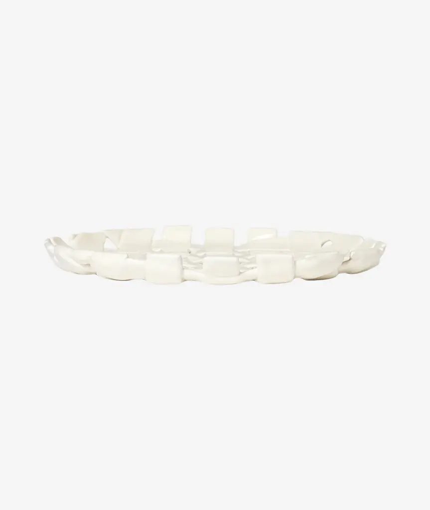 Drawing inspiration from traditional basket weaving techniques, the Plait Platter is a refined hand-braided ceramic masterpiece. Each piece is meticulously sculpted by hand, resulting in a uniquely artful and deliberately uneven piece, ensuring that no two are exactly alike. The Plait Platter is perfect for displaying fresh fruit or bread, offering both functionality and an artistic touch to your kitchen or dining area. Its elegant design and craftsmanship make it an exquisite addition to any home.