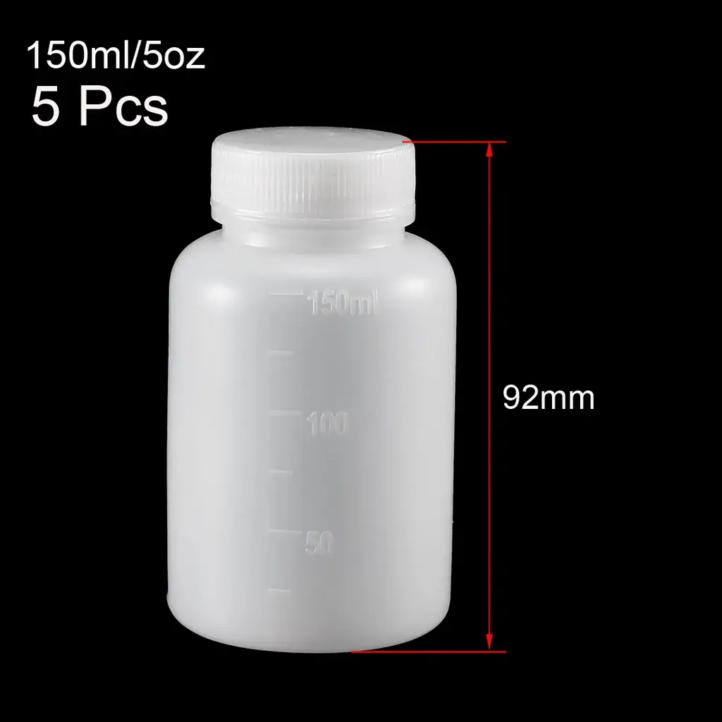 Description:1.Design. Cylindrical body, screwcap, designed for easy and comfortable opening and closing, sealed cover protects from leakage, don't be worry the contents will be spilling out.2.Advantage. No harmful chemicals and very safe to use, moisture, wide range of uses.3.Measurements. The surface of the bottle has scale marks. The body of the bottle is translucent, easier to check the substance or fluid level.4.Application.Suitable for liquid, reagent and sample storage. Widely used in classification of packaging applications in various industries. Specification:Material: PlasticColor: Translucent Package Content:5pcs x Plastic Bottle