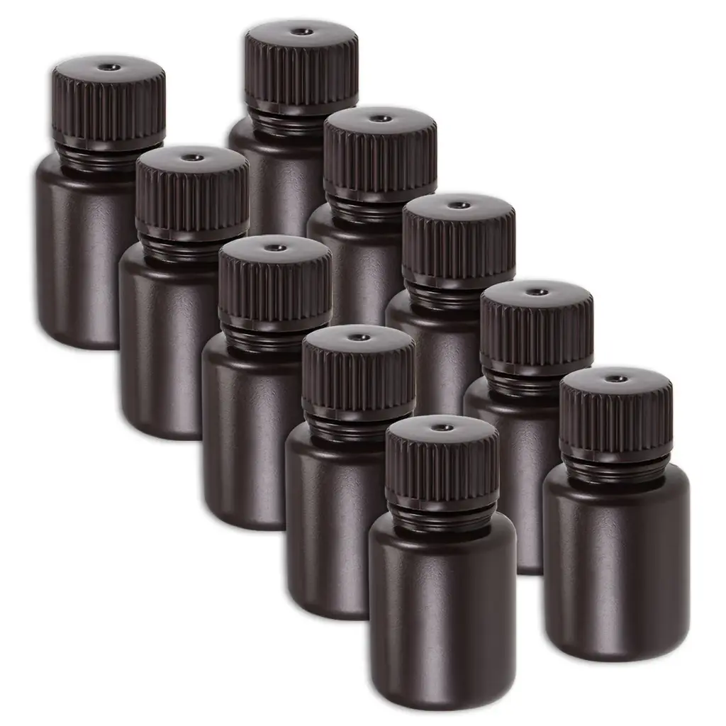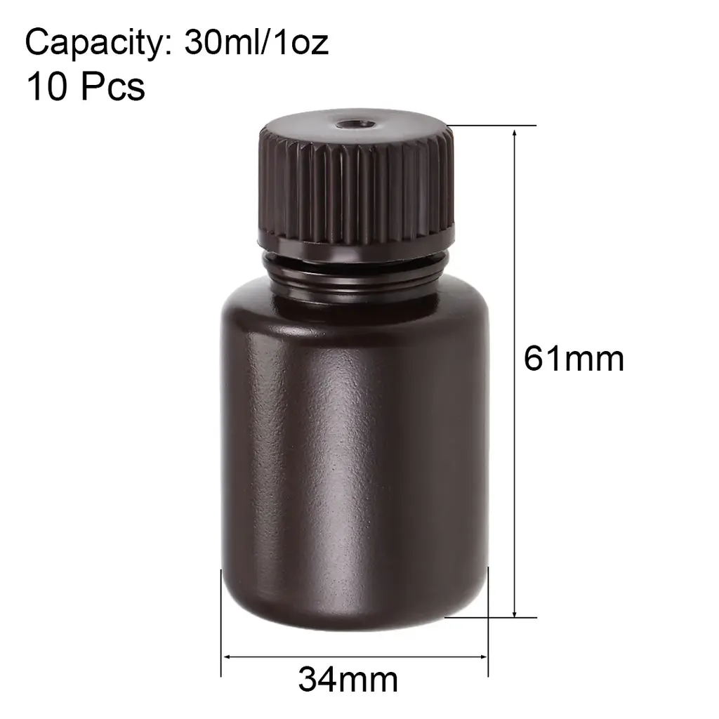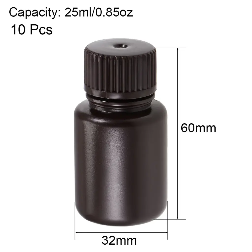Plastic Reagent Bottle Sample Sealing Liquid Storage Container 10pcs - Brown - 25ml/0.85oz