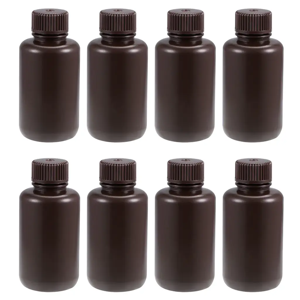 Plastic Reagent Bottle Sample Sealing Liquid Storage Container 8Pcs - Brown - 100ml/3.4oz