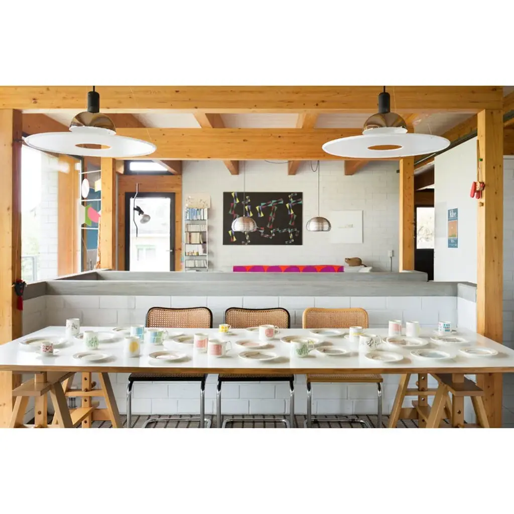Sabato's porcelain plate, crafted from Japanese Hasami porcelain, is an 7.09 in (18 cm) wide plate suitable as a starter plate, bread plate, dessert plate as well as for serving purposes. Adorned with an abstract pattern, this graceful ceramic plate features a glossy glaze finish and is safe for both the dishwasher and microwave. Sabato's ceramic tableware is made in Japan, specifically in Hasami, Nagasaki Prefecture, an area renowned for its centuries-old porcelain-making tradition. Designed by the Drill Design studio, the collection includes both solid-color and patterned pieces, with graphic, nature-inspired designs based on the work of Japanese-Swiss artist Aoi Huber Kono.