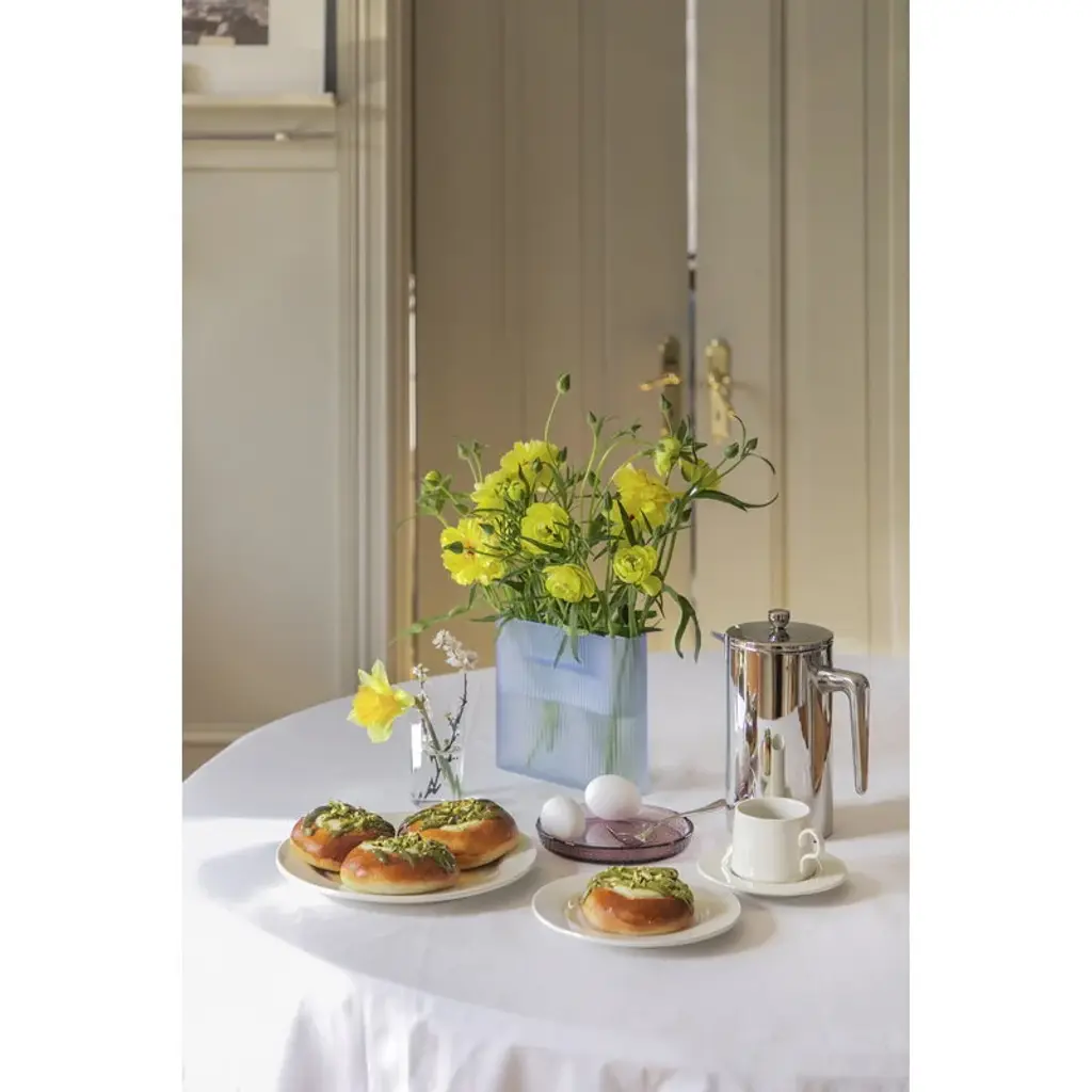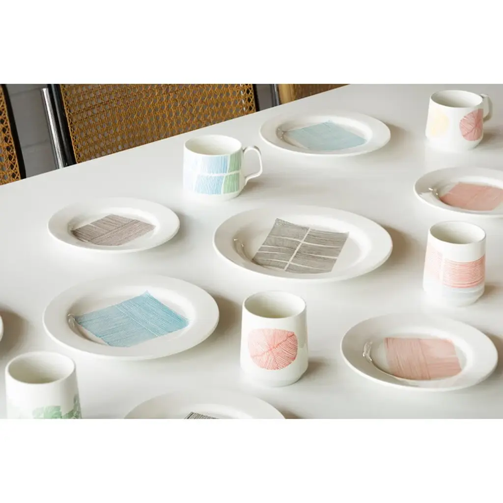 Sabato's porcelain plate, crafted from Japanese Hasami porcelain, is an 7.09 in (18 cm) wide plate suitable as a starter plate, bread plate, dessert plate as well as for serving purposes. Adorned with an abstract pattern, this graceful ceramic plate features a glossy glaze finish and is safe for both the dishwasher and microwave. Sabato's ceramic tableware is made in Japan, specifically in Hasami, Nagasaki Prefecture, an area renowned for its centuries-old porcelain-making tradition. Designed by the Drill Design studio, the collection includes both solid-color and patterned pieces, with graphic, nature-inspired designs based on the work of Japanese-Swiss artist Aoi Huber Kono.