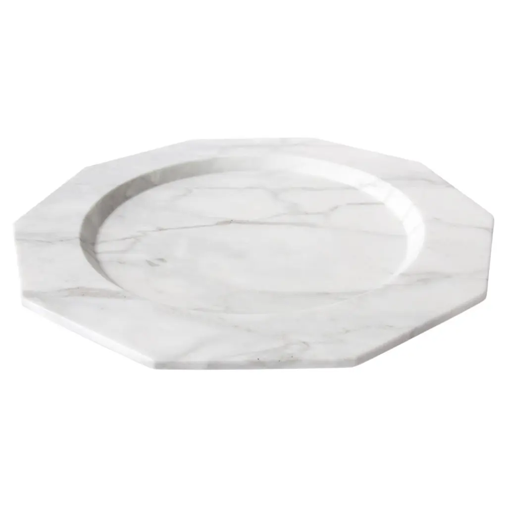 Plate Platter Serveware White Calacatta Marble Collectible Design Hand-Carved