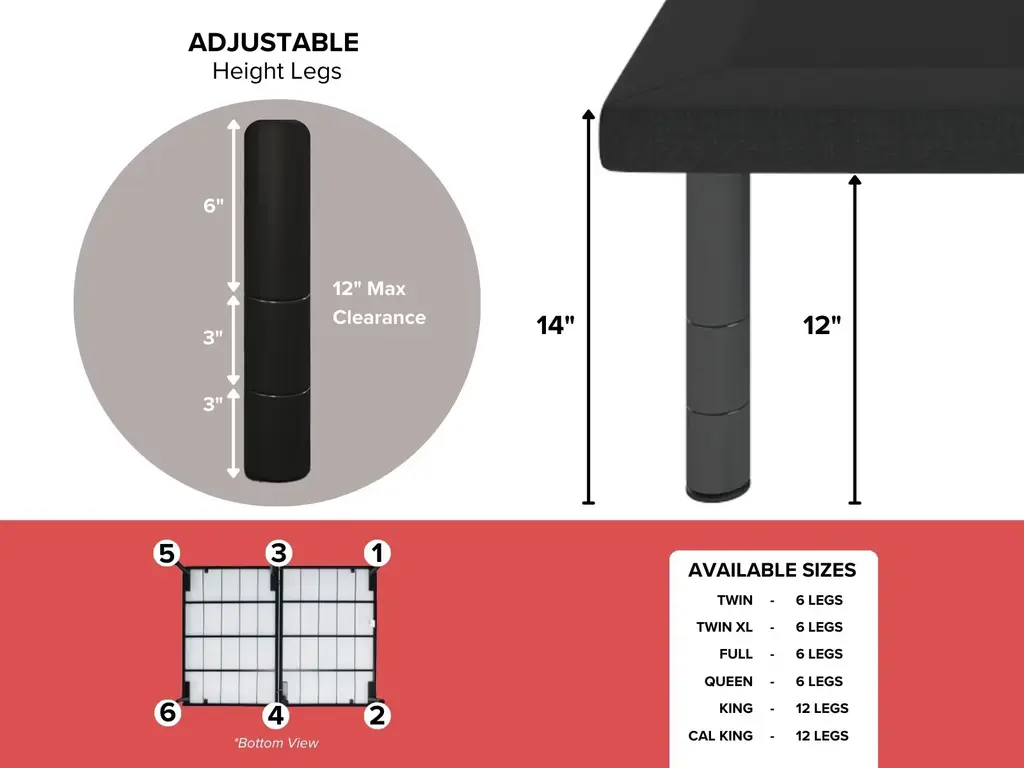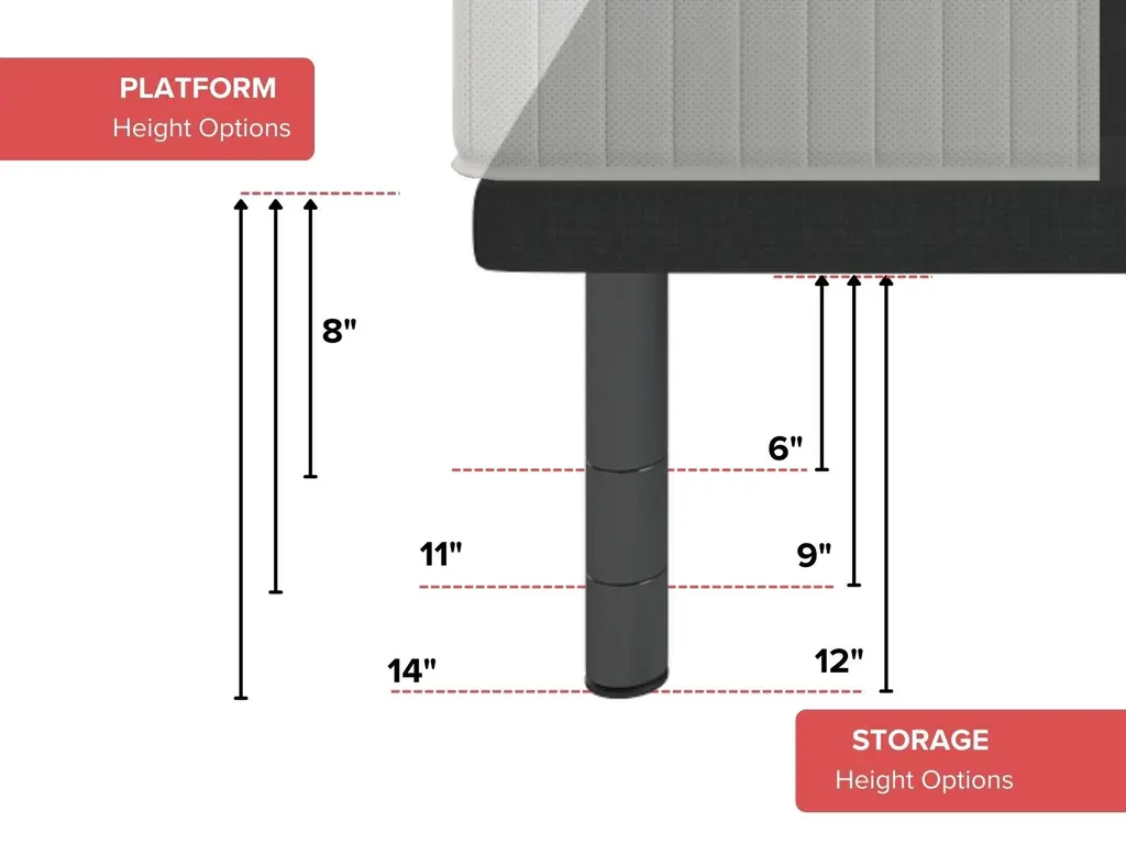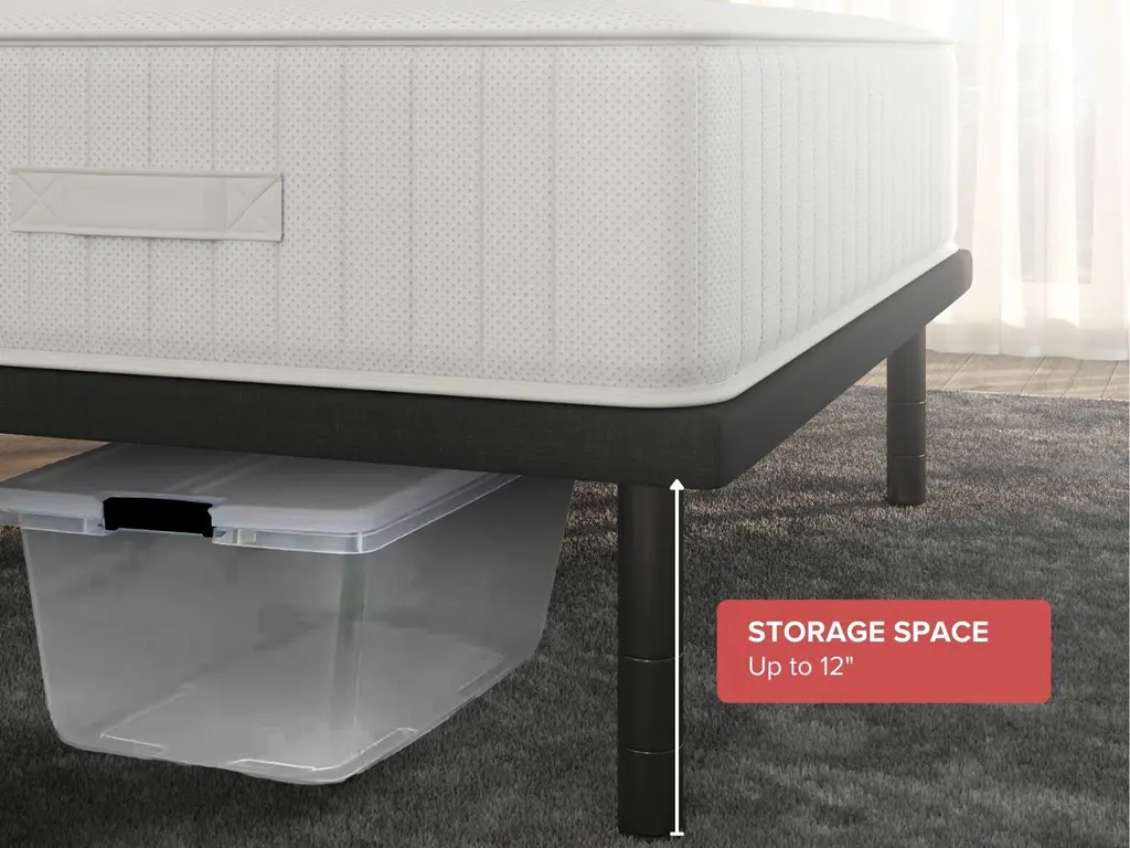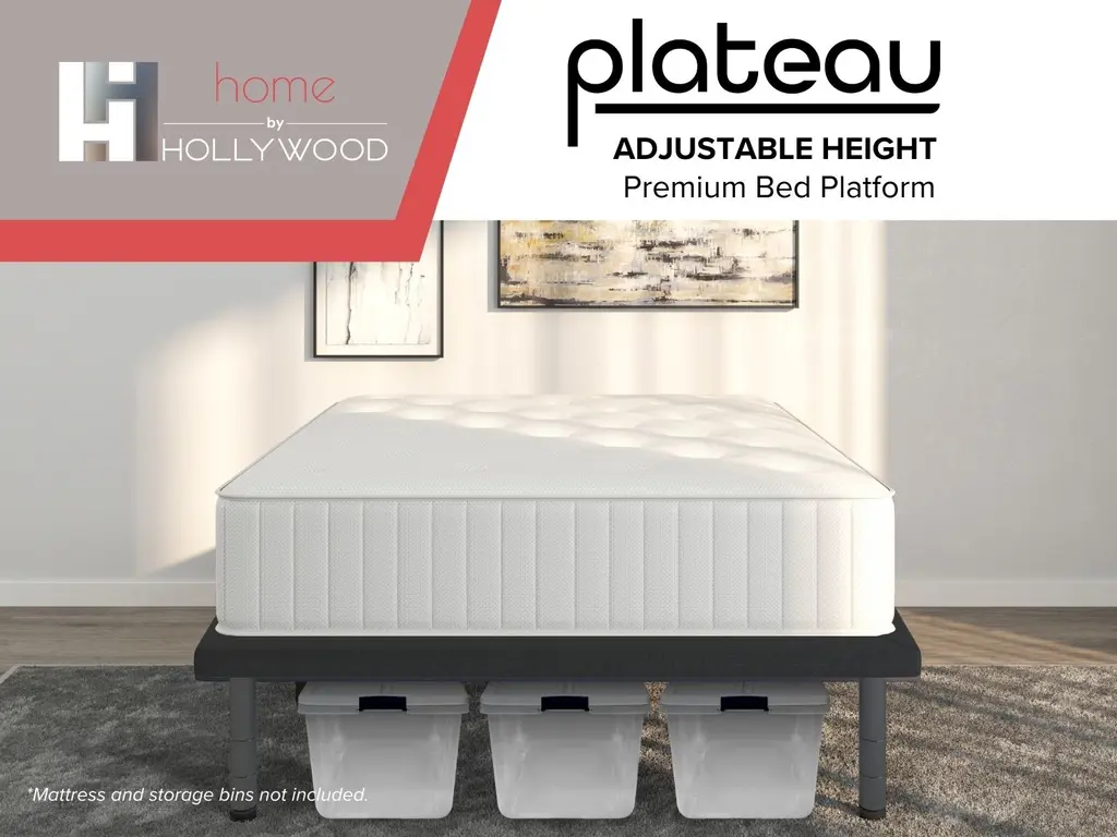 Today’s high quality mattresses were designed to perform with a sturdy non-yielding foundation system. The Plateau Platform Frame provides a complete mattress support system without the need for a boxspring. Upholstered with heavy duty fabric, it supports up to 2,000lbs. Assembly is easy, simply unfold the frame and screw on the height-adjustable legs – no tools needed. Works with headboards for a custom look, attachments sold separately. And with a 3-year limited warranty you can rest easy knowing your investment is protected.