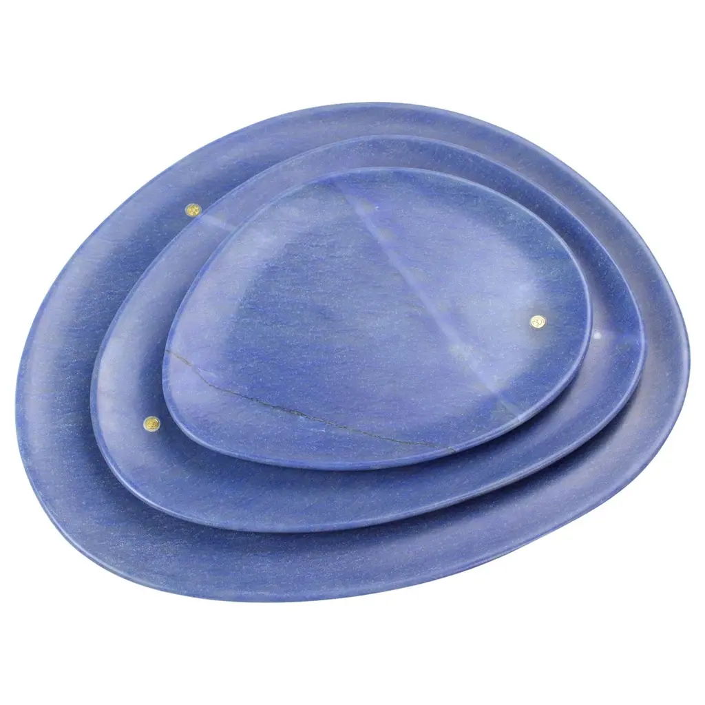 Plates Platters Serveware Set Of 3 Blue Azul Macaubas Marble Hand-Carved Italy