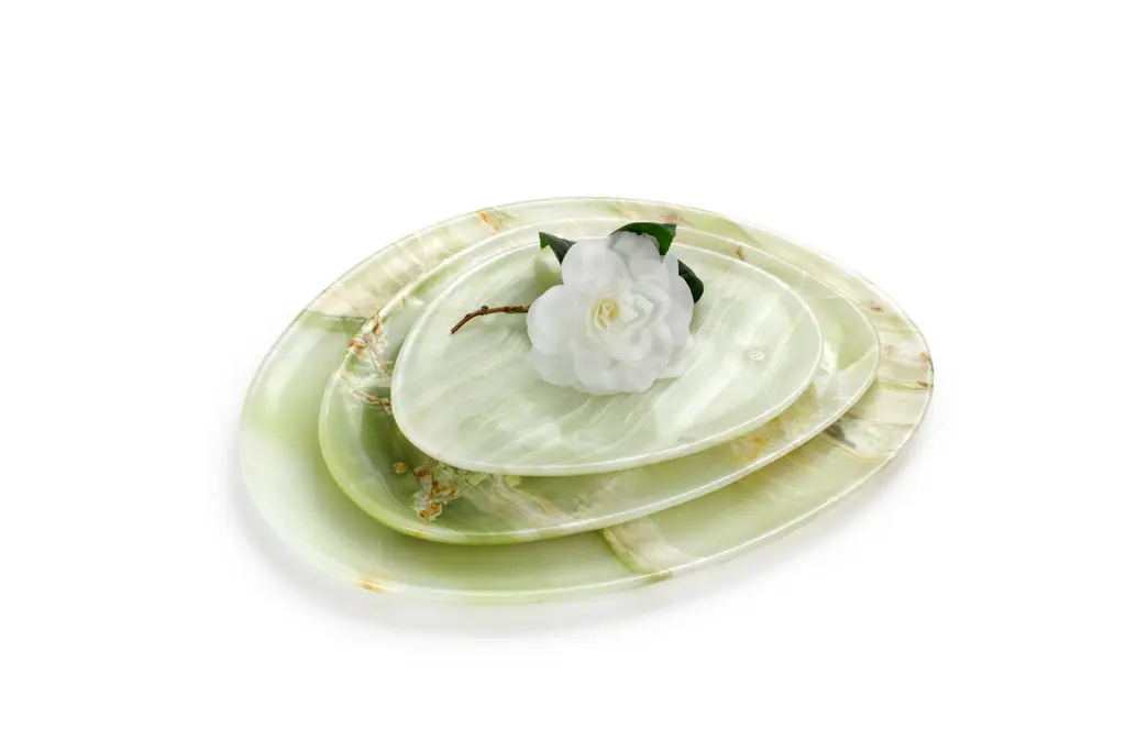 Plates Platters Serveware Set Of 3 Solid Green Onyx Marble Hand-Carved Italy