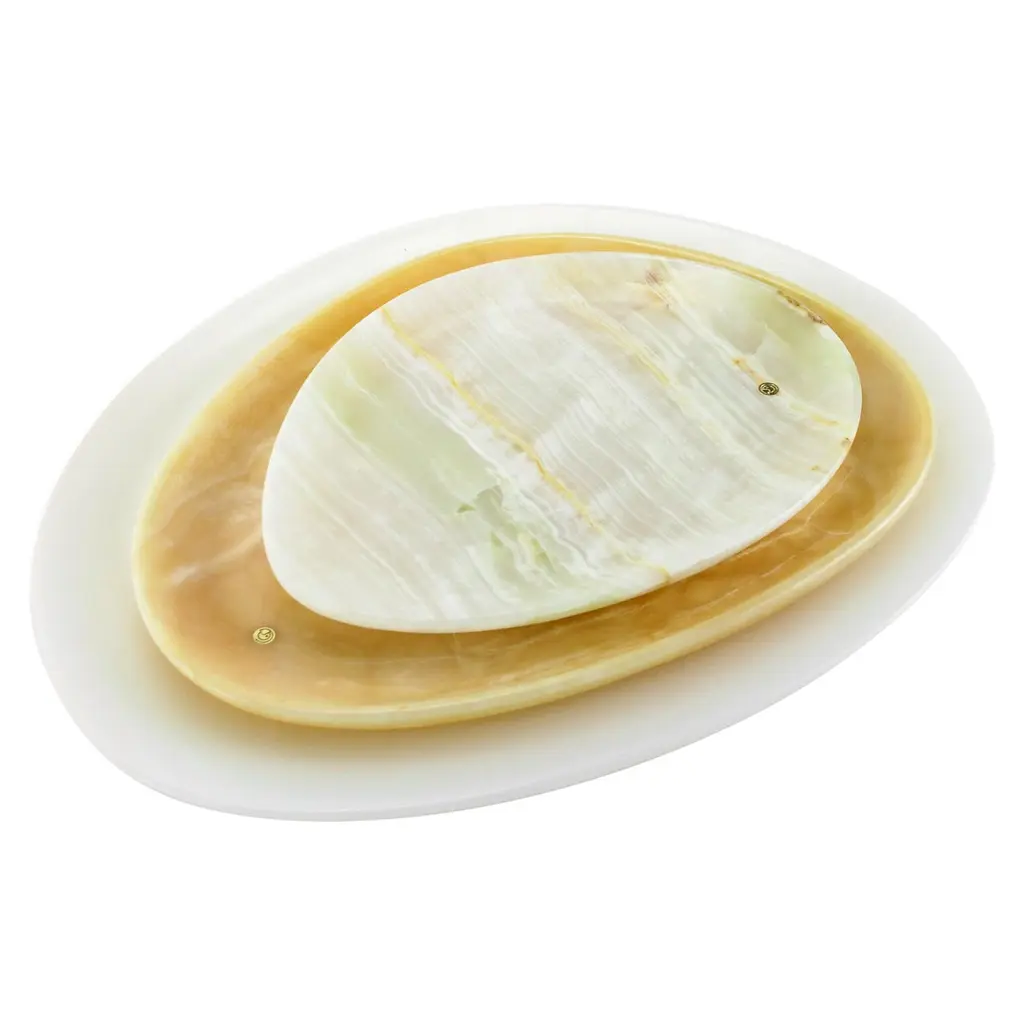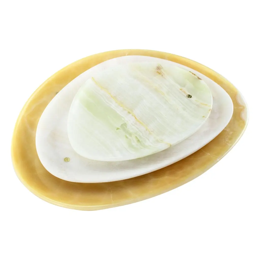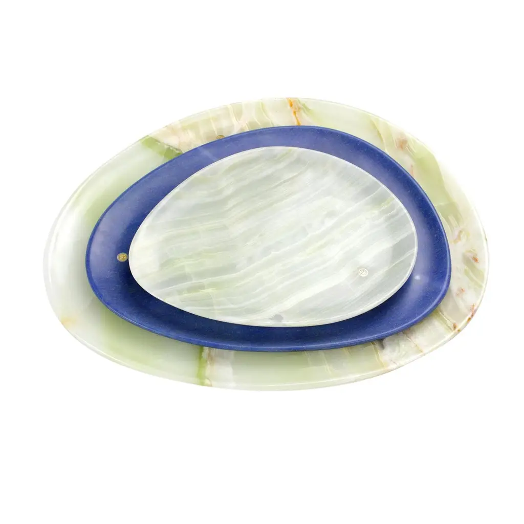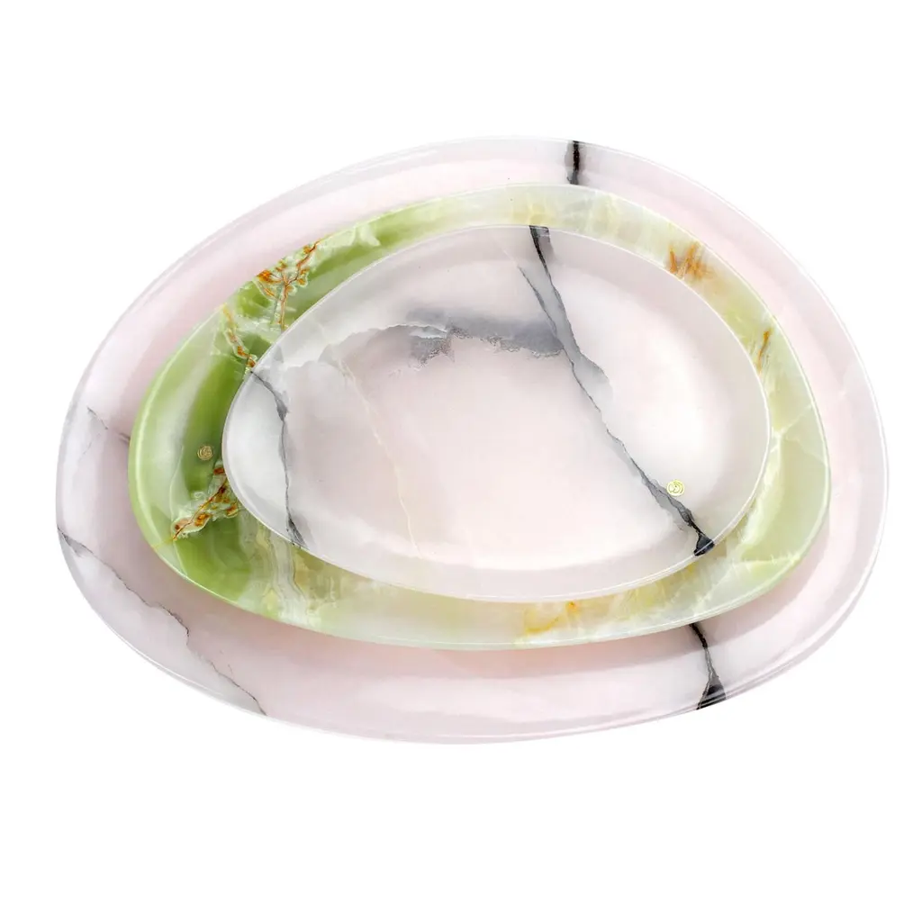 Plates Platters Serveware Set Orange White Onyx Grey Stone Marble Hand-Carved