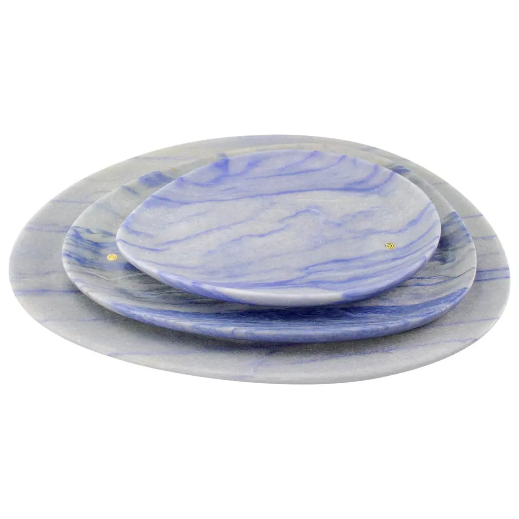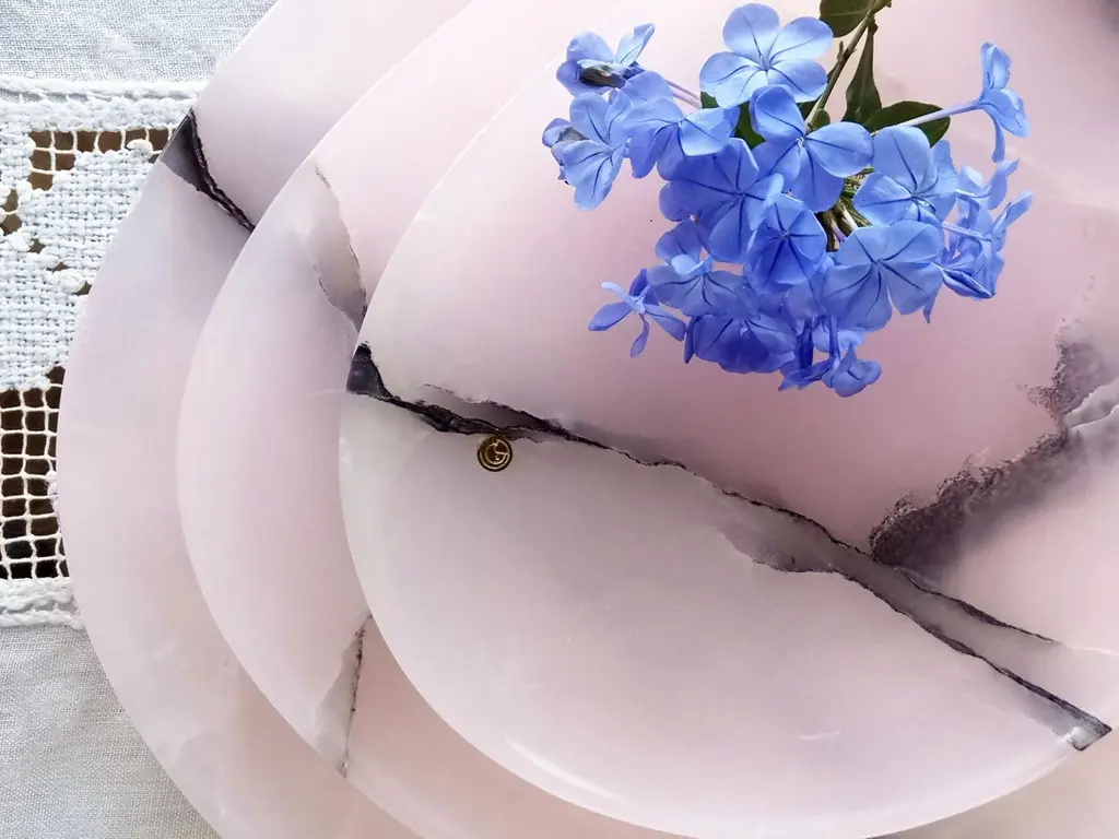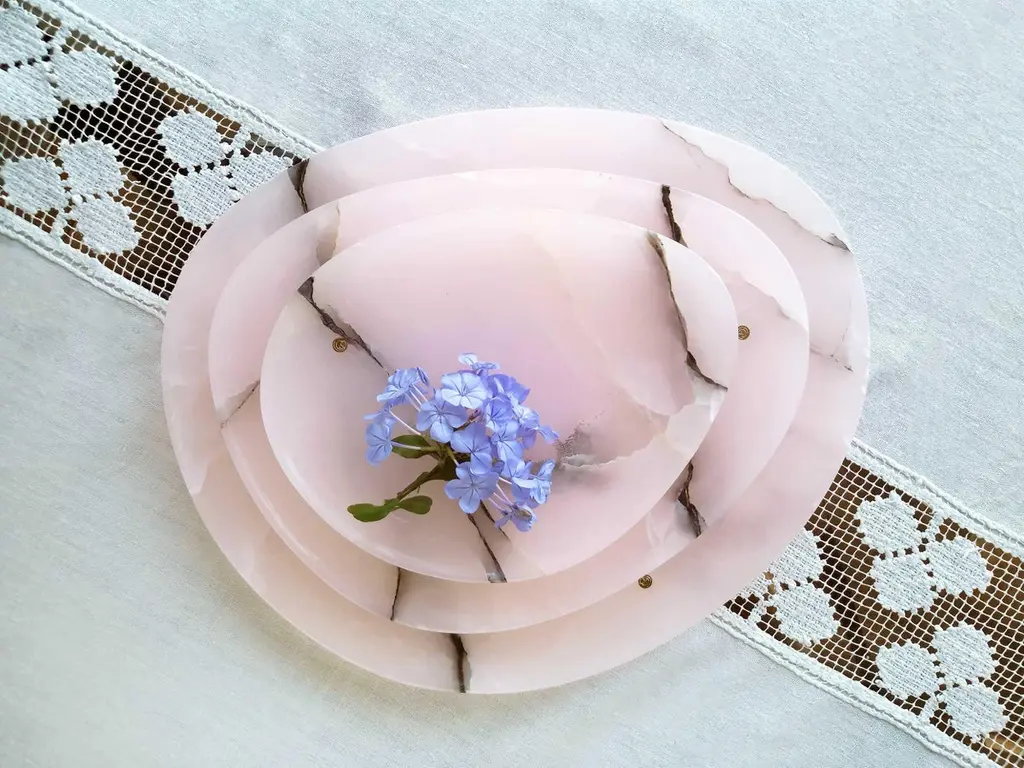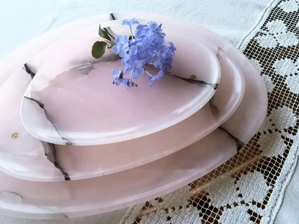 Plates Platters Serveware Set Pink Onyx Marble Collectible Design Hand-Carved