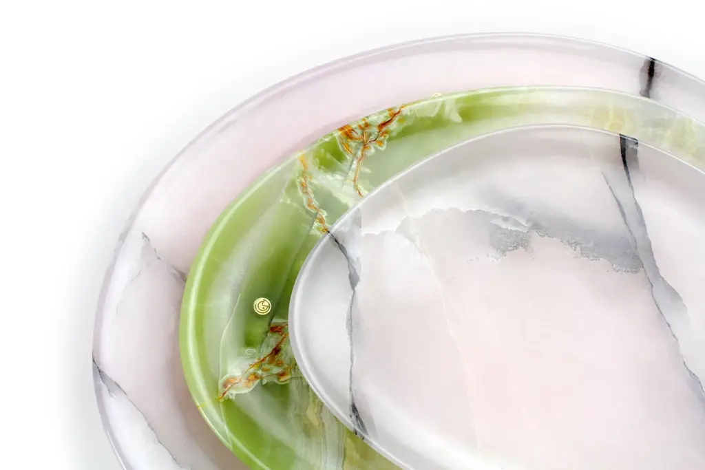 Plates Platters Serveware Set Solid Pink Green Onyx Marble Hand-Carved Italy