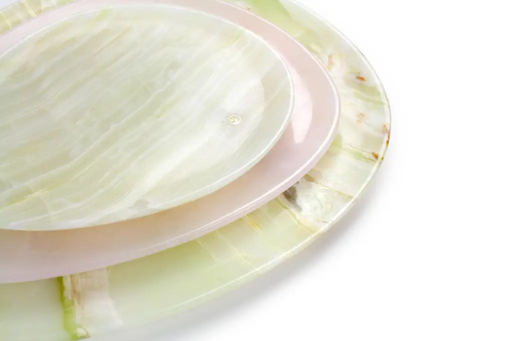 Plates Platters Serveware Set Solid Pink Green Onyx Marble Hand-Carved Italy