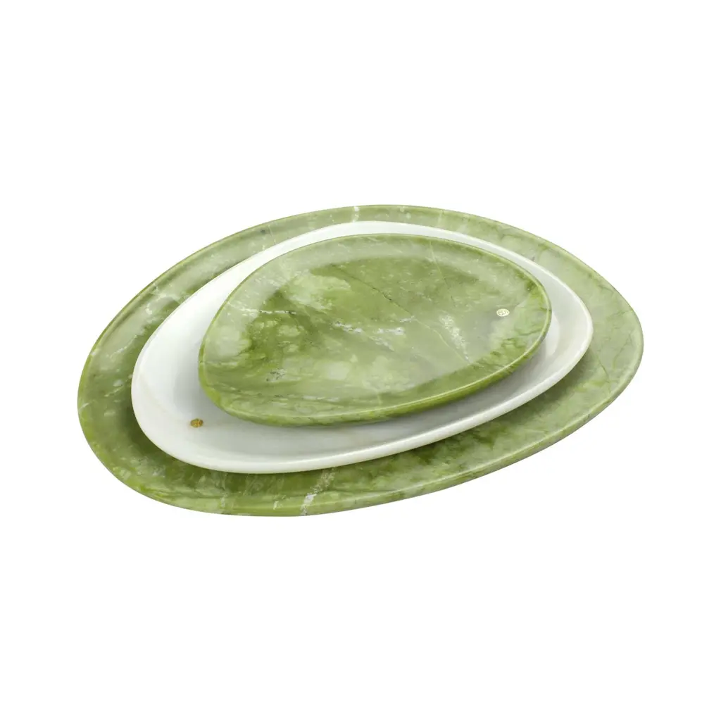 Plates Platters Serveware Solid Green White Orange Onyx Marble Hand-Carved Italy