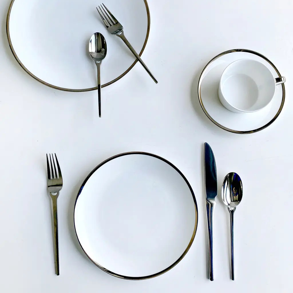 Combining the purity of fine bone china with the sleek modernity of hand-painted platinum, the Platinum Edge dinnerware collection brings timeless elegance to the table.