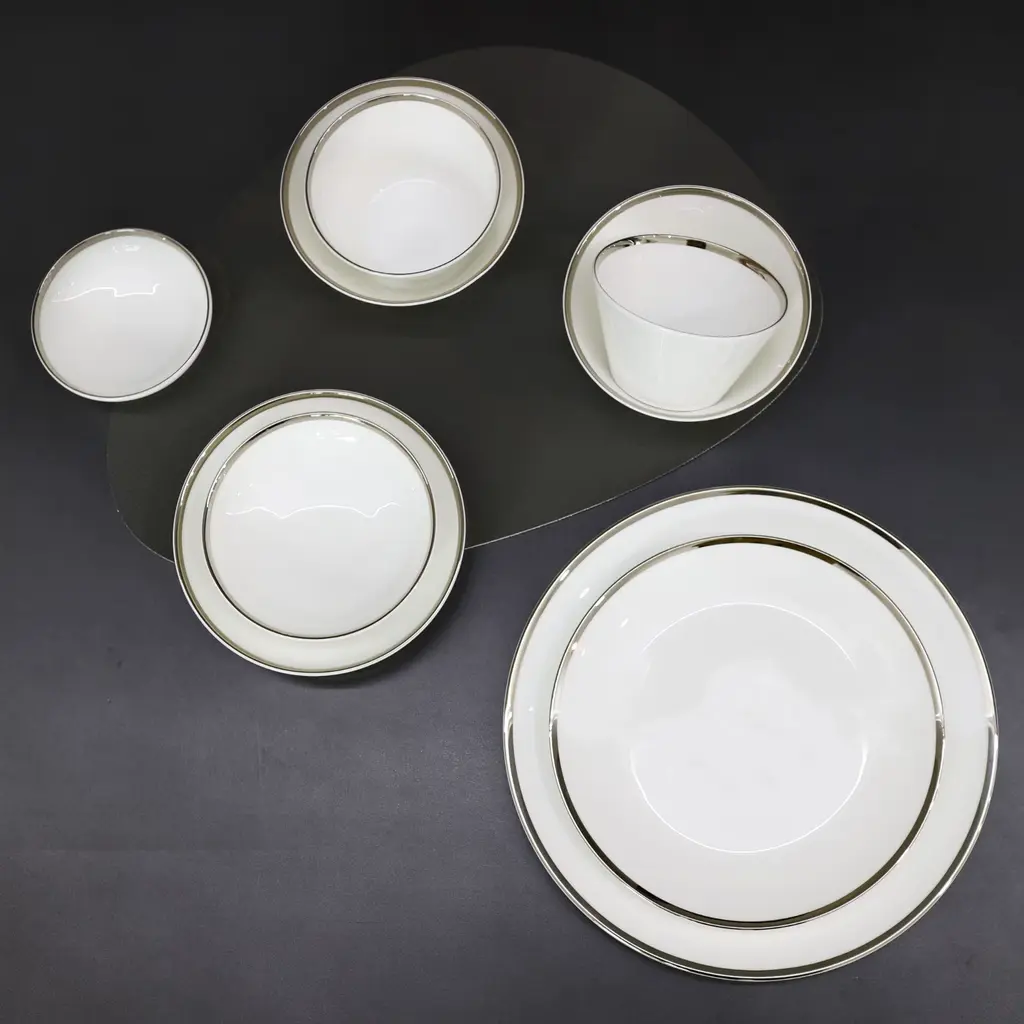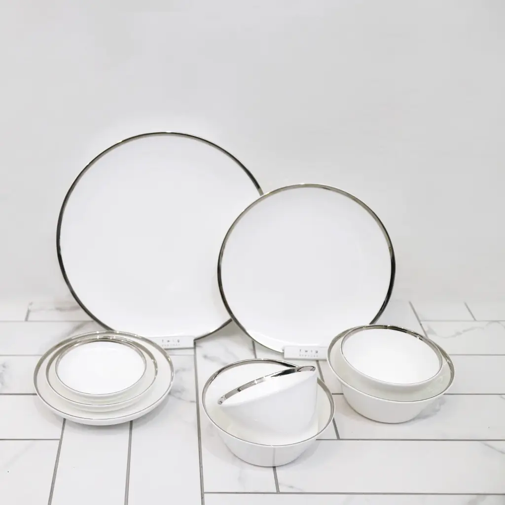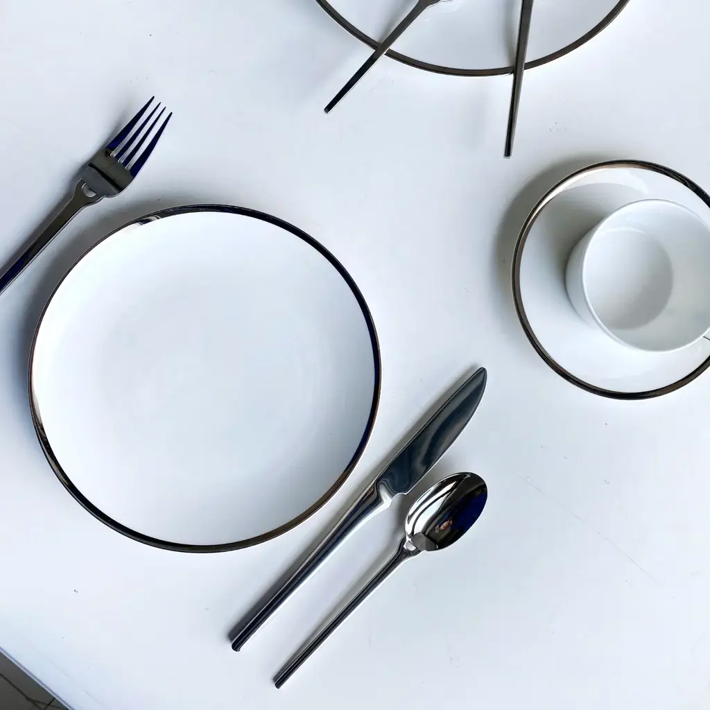 A classically inspired collection which combines the majestic look of Platinum with the purity of Fine Bone China. The edges in this collection are all hand-painted. This collection has been designed with sophistication and minimalism as our inspirations. With contemporary shapes and a complete collection to choose from, we offer elegance and modernity from the Platinum Edge Collection by Twig New York.Ideal for bread, butter, and dessertsOne set of two per boxFine Bone China with hand-painted Platinum rimDue to hand-painted nature of the process, the gold finish may contain variations and brush strokesPlatinum Edge Collection