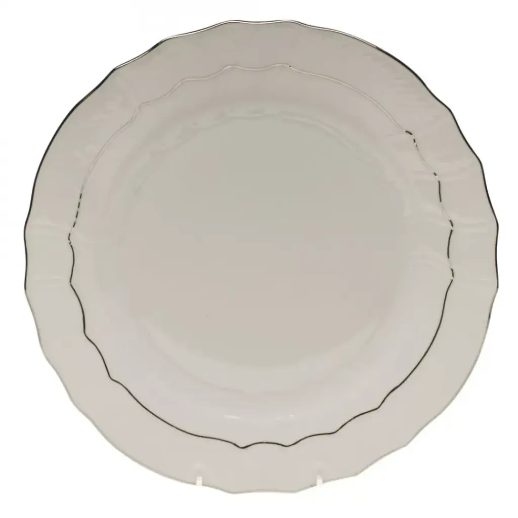 A rich, elegant style, the traditional Golden Edge design of the early twentieth century is updated here in platinum. Hand painted in Hungary. Now the biggest porcelain manufactory in Europe, Herend was founded in 1826 to produce earthenware in the small Hungarian village for which it was named. At the time, Hungary was flooded with low-cost pottery, but in 1839, Mor Fischer became the Manufactory’s new owner and he decided to focus on producing dinnerware replacement pieces for Europe’s royal families to complement their valuable porcelain patterns from Germany and the Far East. As his client base grew, Fischer commissioned his artists to begin designing dinnerware patterns of their own. Queen Victoria’s 1851 purchase of a large set for Windsor Castle was a milestone, setting the stage for aristocrats throughout Europe to clamor for Herend in their estates. In the 1850s, Herend added meticulously-crafted figurines to its creations. Herend’s trademark fishnet pattern, which is widely recognized and prized as Herend’s signature design, started in 1858 when an artist who was intrigued with a Chinese plate’s fish scale design painted it onto a rooster figurine to imitate feathers.