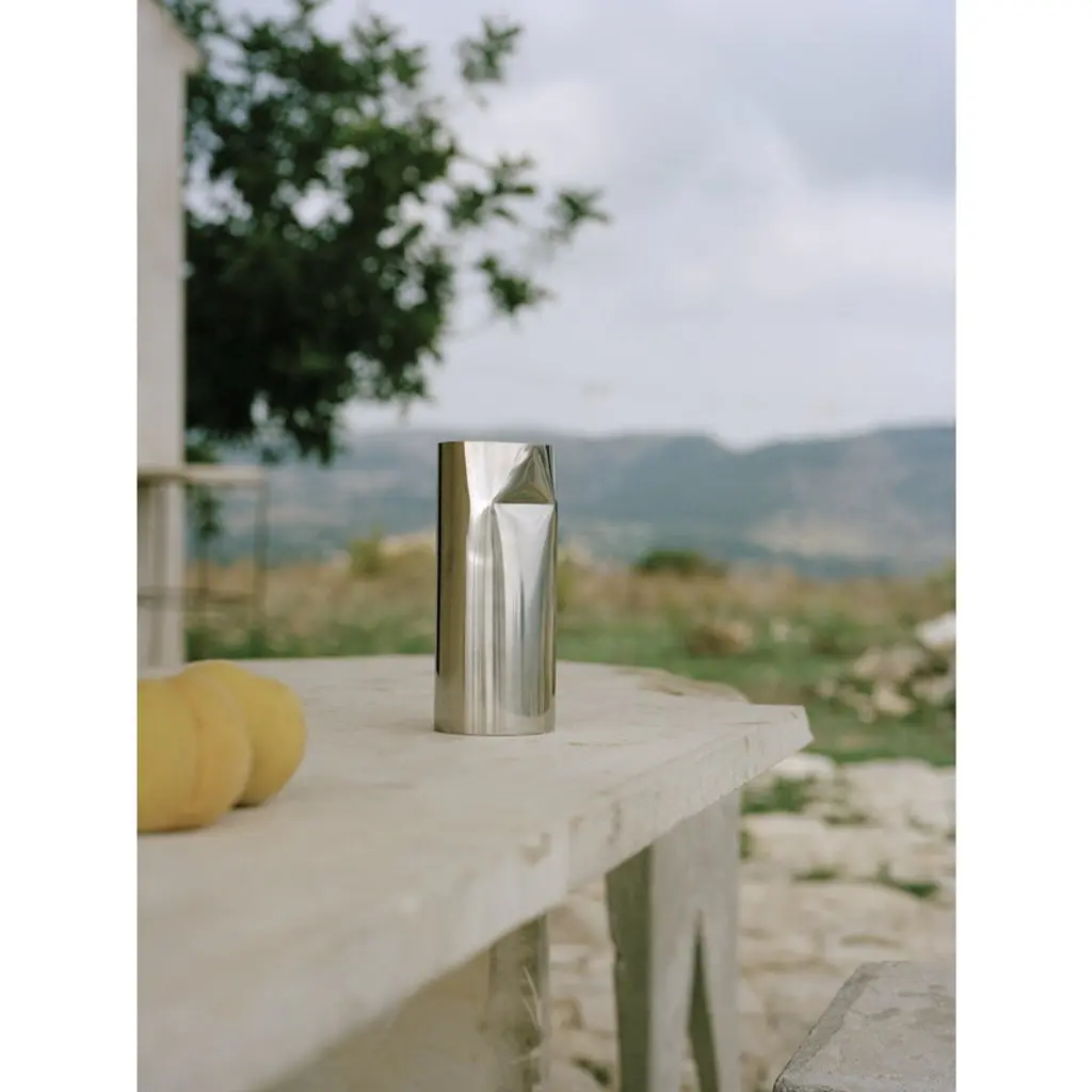 The Pleat pitcher by New Works was born out of designer Omayra Maymó’s project in which she investigated ways to combine industrial production and individuality. The minimalist steel pitcher is crafted by pulling the edge of a steel tube, allowing the material to fold naturally – the idea was not to impose the form but let the material behave as it will. Due to the technique, each pitcher has a slightly different-shaped spout, making each piece unique.