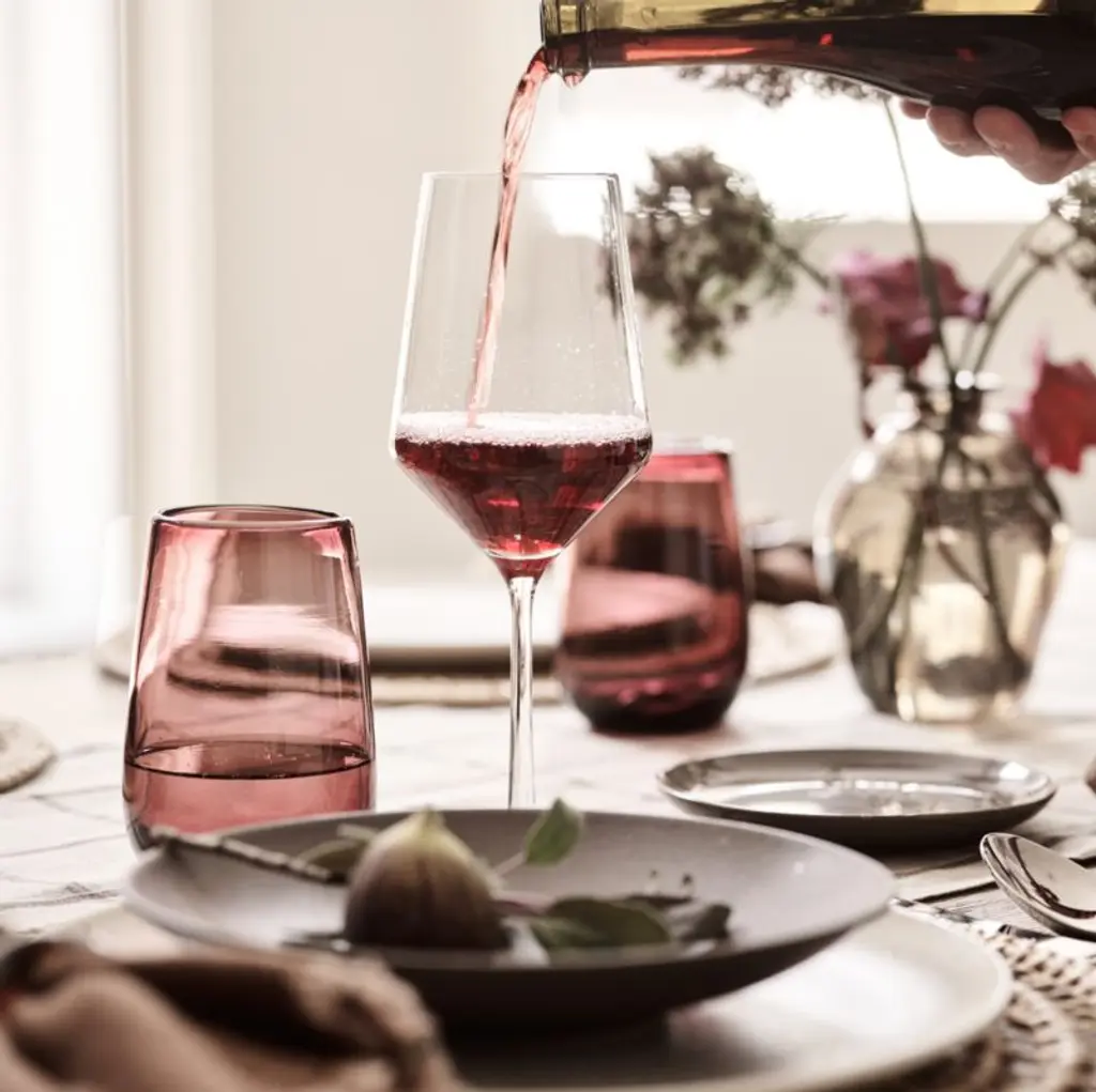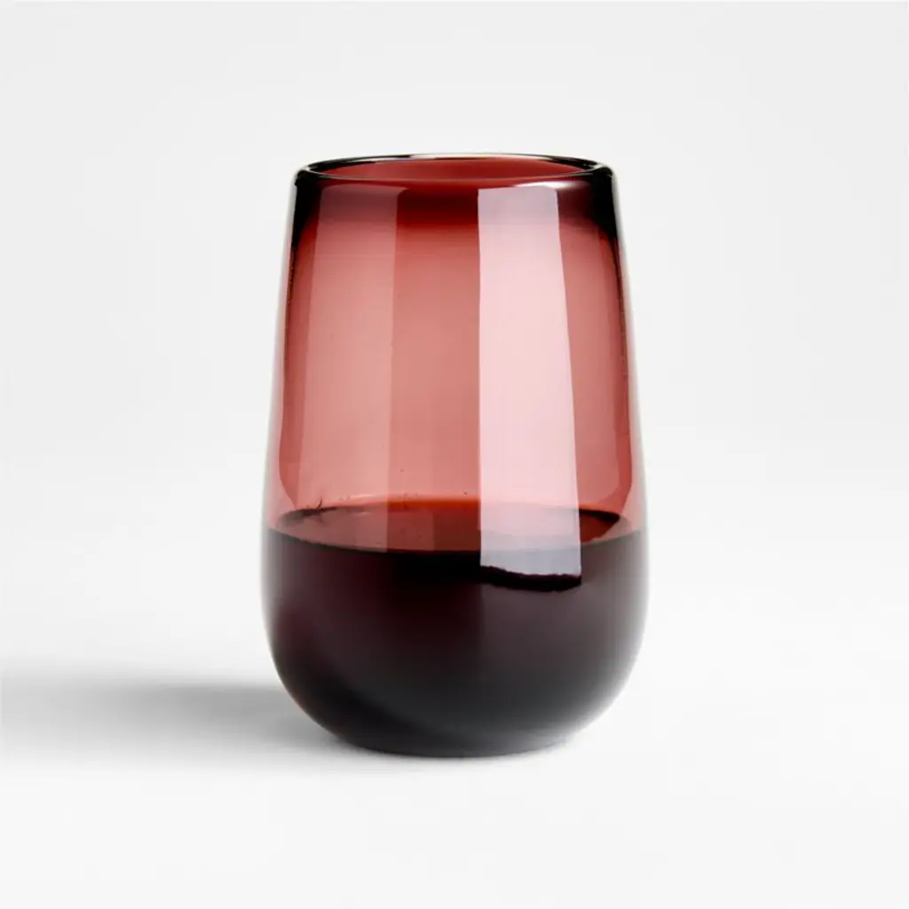 Perfect for cradling in hand, this stemless glass has a pleasing heft and lovely plum color. Hand-blown of recycled glass, the all-purpose wine glass is thick and sturdy and perfect for fireside sipping or setting an autumnal table.