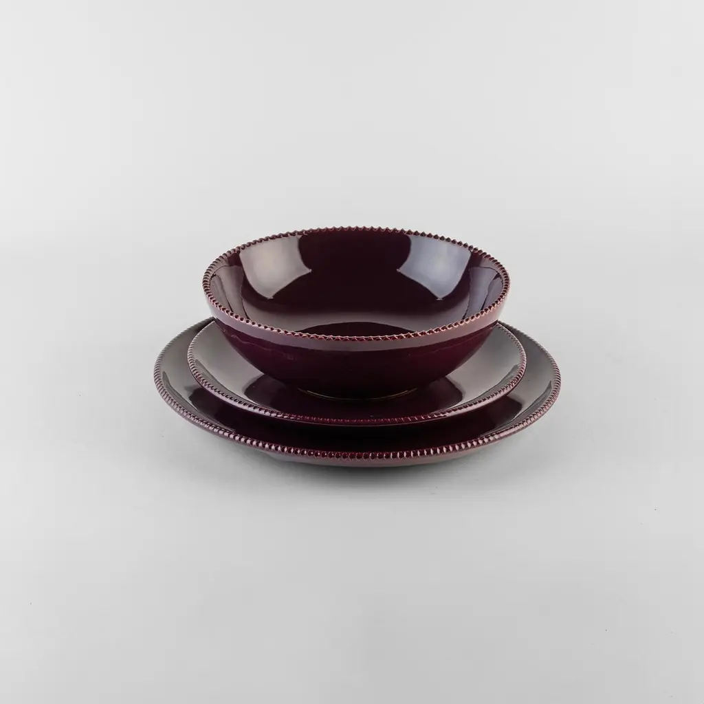 Plum Crenellated Plates: Soup, Holder, Side Plate For 4. Handmade In Italy 2024