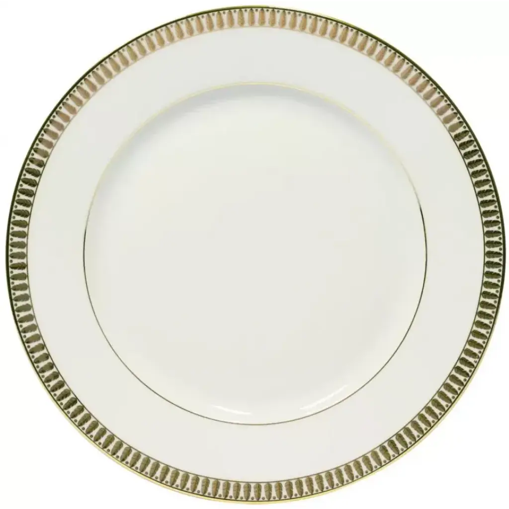 Plumes Dinnerware from Haviland is a masterful composition of gold or platinum and white Limoges porcelain. Also available in platinum; images show both options. Five piece place setting includes dinner plate, salad/dessert plate, bread & butter plate, teacup and saucer. Haviland Porcelain was founded by David Haviland, an American who moved from New York to France after he was brought a broken tea cup to match and recognized the quality and color of the old piece of porcelain. Filled with curiosity, he went to France to find the factory where the cup had been made, but the samples he was sent were not up to his standards. So in 1841, he moved to Limoges to set up his own factory. Traditional French dinnerware was usually produced in Limoges and sent to Paris for decoration. Haviland insisted on setting up a studio within his factory to have more control over the designs. Renowned artists, including Cocteau, Dali, and Kandinsky have played a role in the company's designs. Today, Haviland is one of the premier names in French porcelain dinnerware, sought by collectors all over the world. Clients have included the White House, Empress Eugenie, General de Gaulle, Jacques Chirac, the Emperor of Japan, and the Royal Court of Morocco.