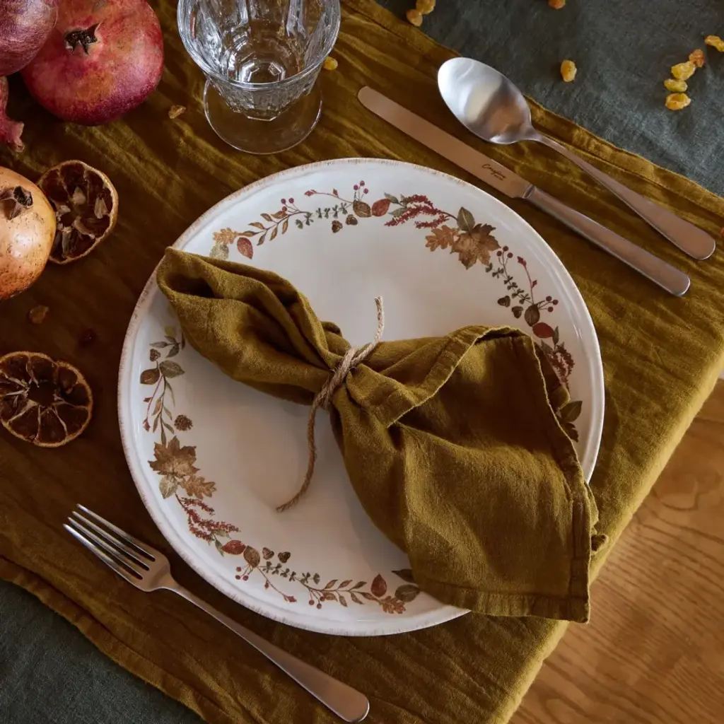 Plymouth is a homage to the spirit of gratitude and togetherness. With warm earthy tones, organic shapes and hand applied rustic accents, this collection brings a touch of the countryside to any dining table. From the generous serving platter to the delicate dessert plate, every item is designed to bring people together. Every Plymouth item is designed to bring people together around the table. Plymouth is presented in three different shapes: a dinner plate, a dessert plate and a generous platter. A perfect mix and match to our Fontana collection and all its vibrant colors.
