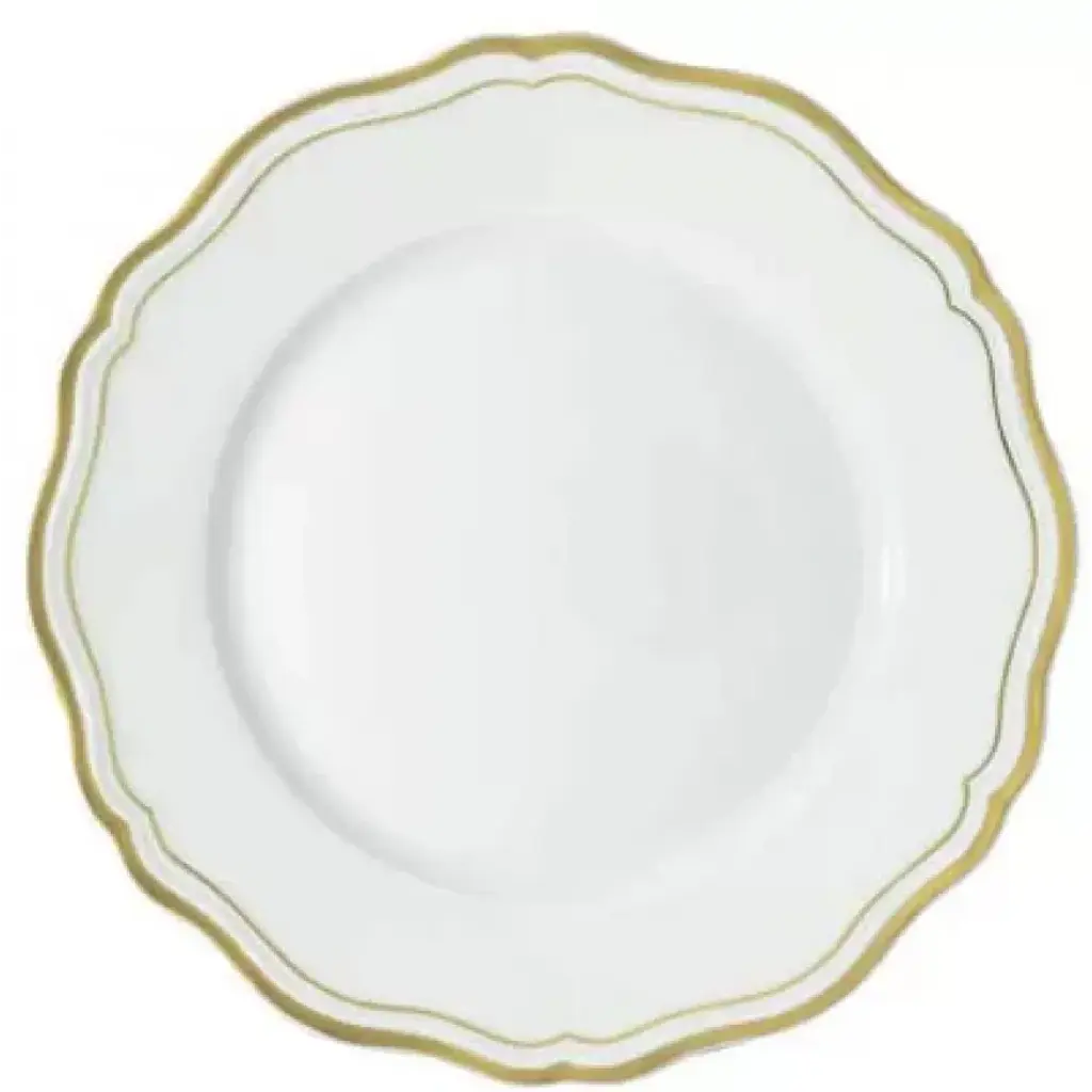 Polka Gold dinnerware is a modern classic. Each piece is crafted by master artisans using the finest Limoges porcelain and finished with flawless gold trim. Five-piece place setting includes dinner plate, salad plate, bread/butter plate, teacup, and saucer. Raynaud was established in 1849 and is the only survivor of 11 porcelain factories existing in Limoges, France. After years of research, Raynaud discovered techniques to create infinite combinations of fade-resistant decorations that is still used by porcelain makers. Boasting a client list of numerous presidents to Princess Diana, Raynaud has been the synonym of quality, known and recognized on every continent.