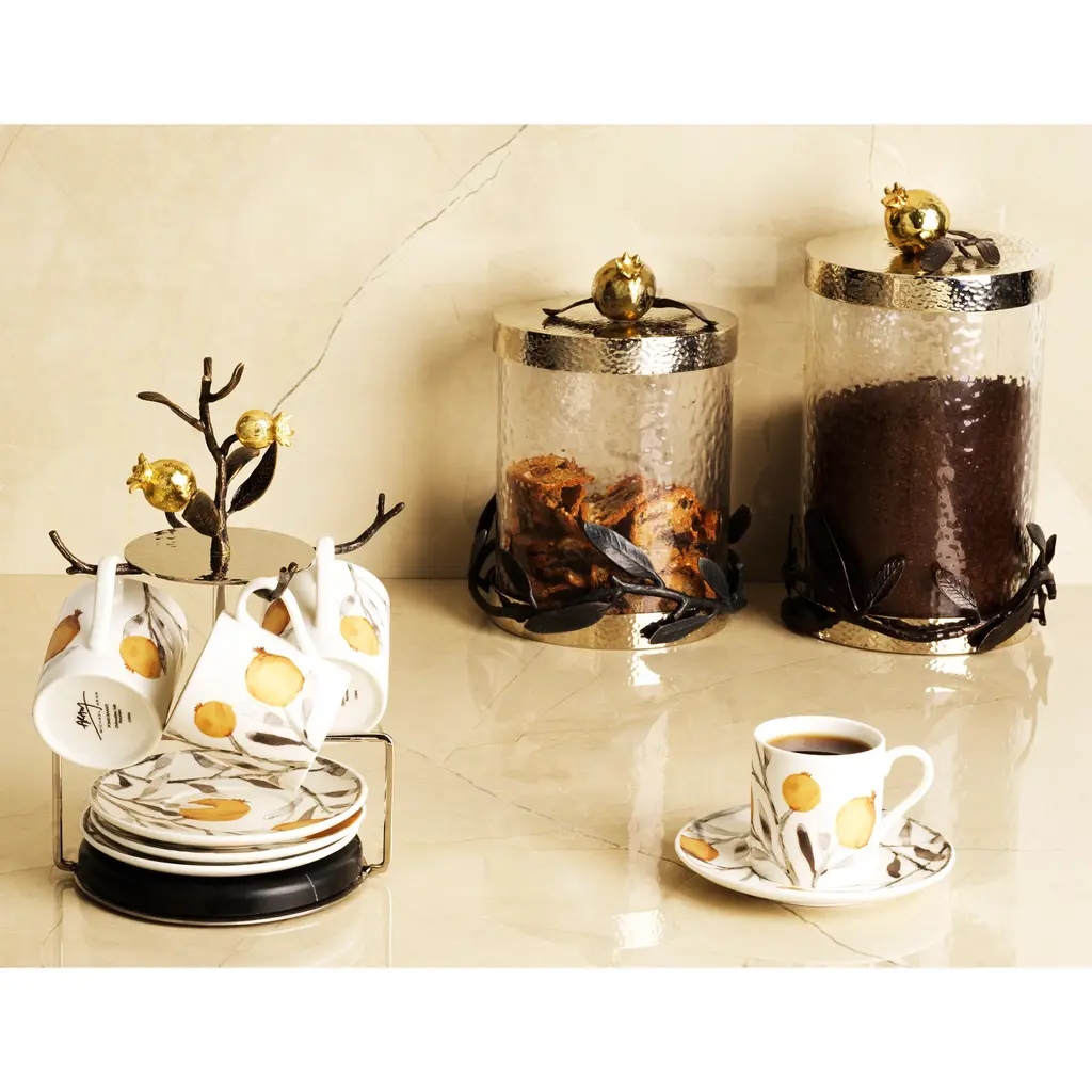 Pomegranate Demitasse Cup & Saucer Set With Stand