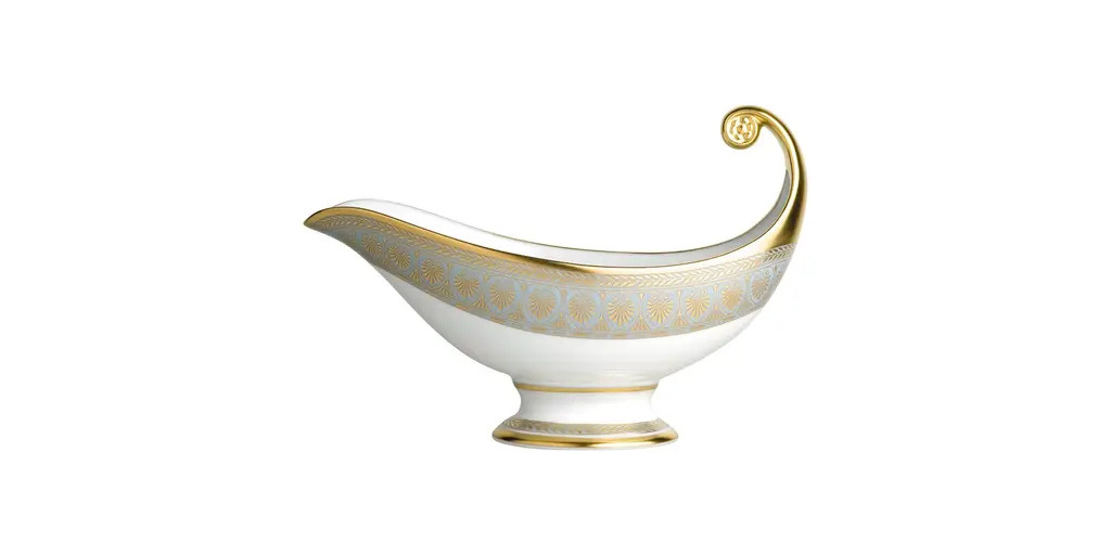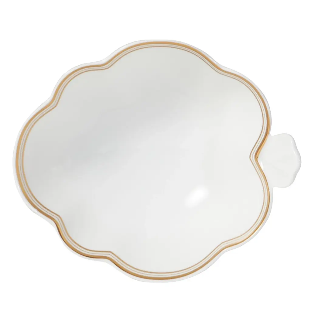 Pompadour reflects the simple elegance of a scalloped shape, enhanced by three fine gold lines. Designed to accentuate the scalloped edges, they make it a contemporary service of refined luxury.