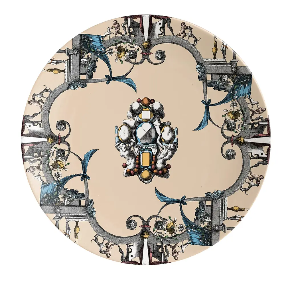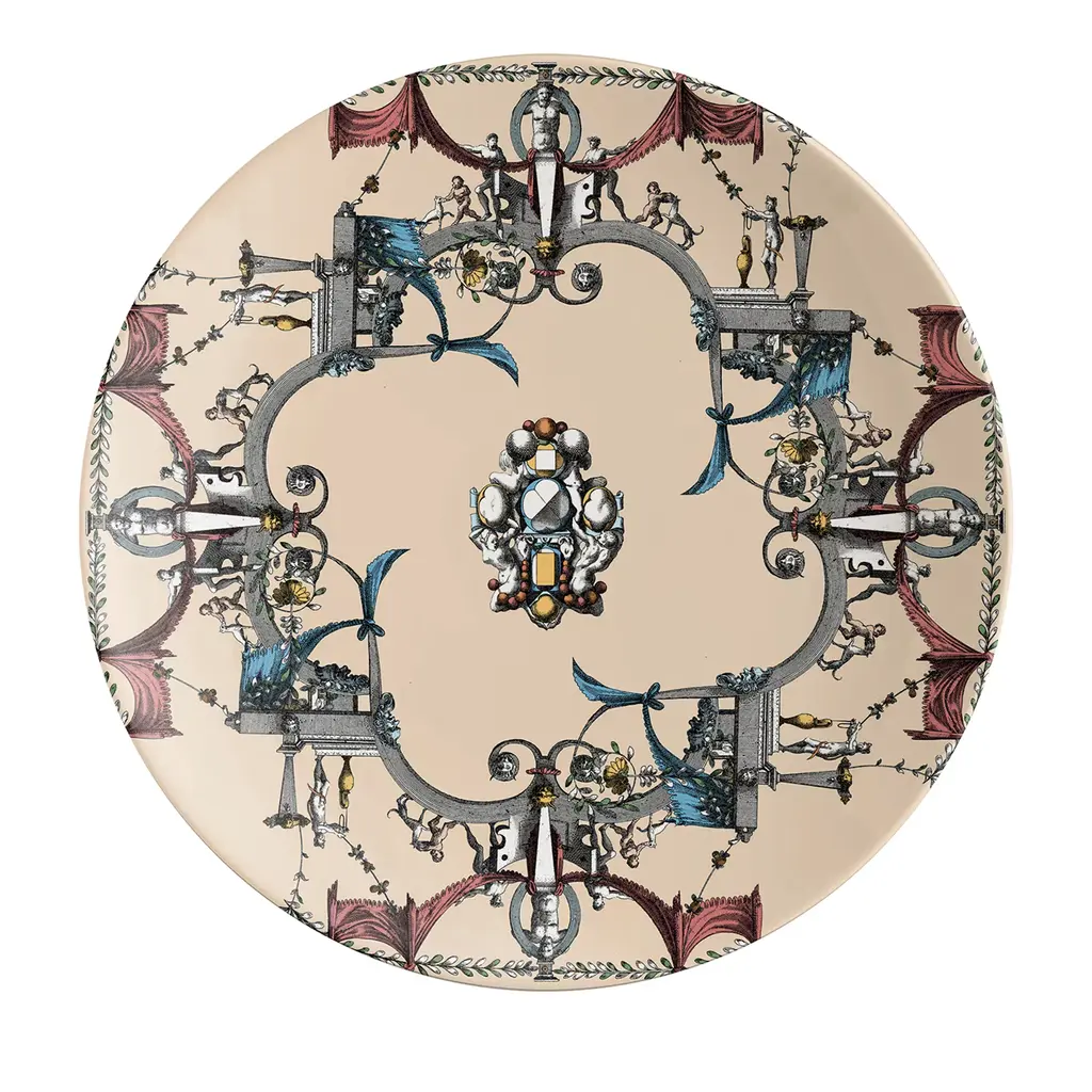 The new Pompei porcelain collection brings back the Grottesche wall decoration in a contemporary key. Ancient designs are taken and declined on the different formats of the mise en place in such a way as to create elegant and unique plays of overlapping. Natural elements, anthropomorphic figures, jewelry and architecture come together to create stories, decorations and geometries. This collection manages to be transversal, adapting to both regal and elegant tables and more formal settings.