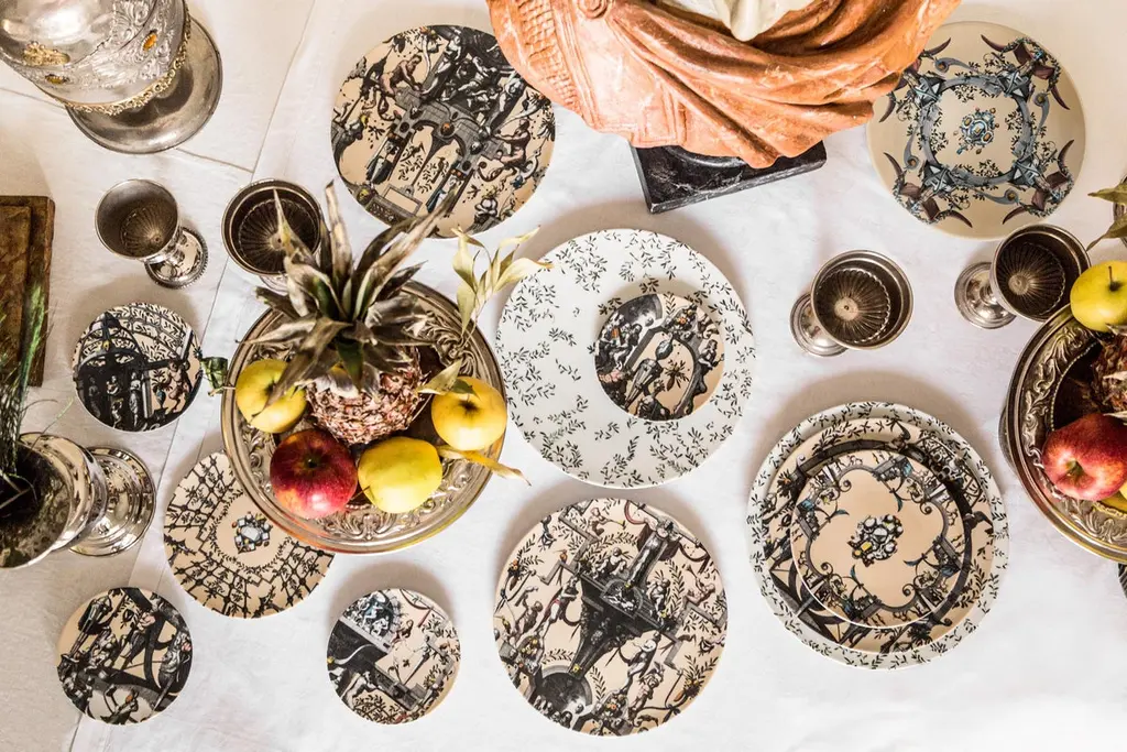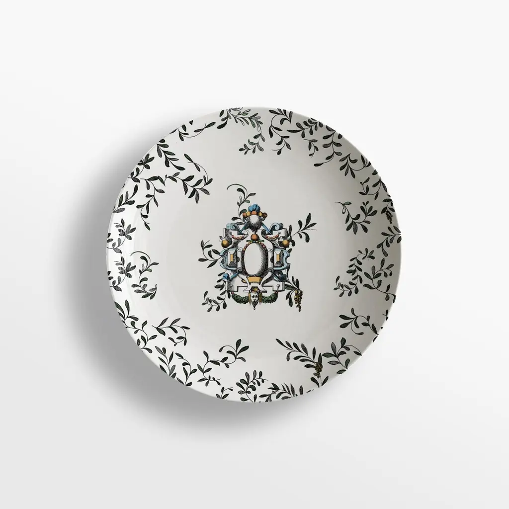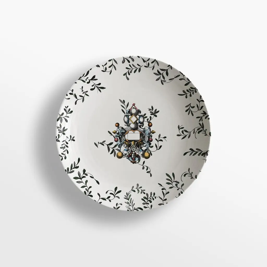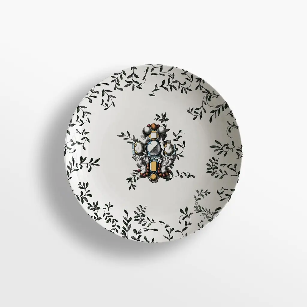 The porcelain collection Pompei by Grand Tour By Vito Nesta brings the Grottesche wall decoration back to life in a contemporary key. Ancient designs are taken and declined on the different formats of the mise en place in such a way as to create elegant and unique plays of overlapping. Natural elements, anthropomorphic figures, jewellery and architecture come together to create stories, decorations and geometries that fill the eye and intrigue the mind. This collection manages to be transversal, adapting both to regal and elegant tables and to more formal settings, elevating them with flair.Set of 6 soup plates.