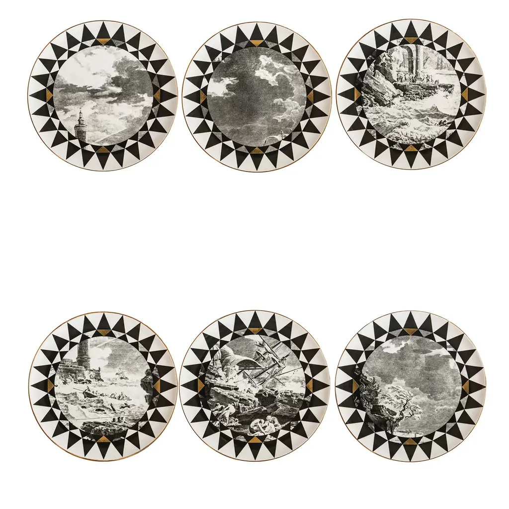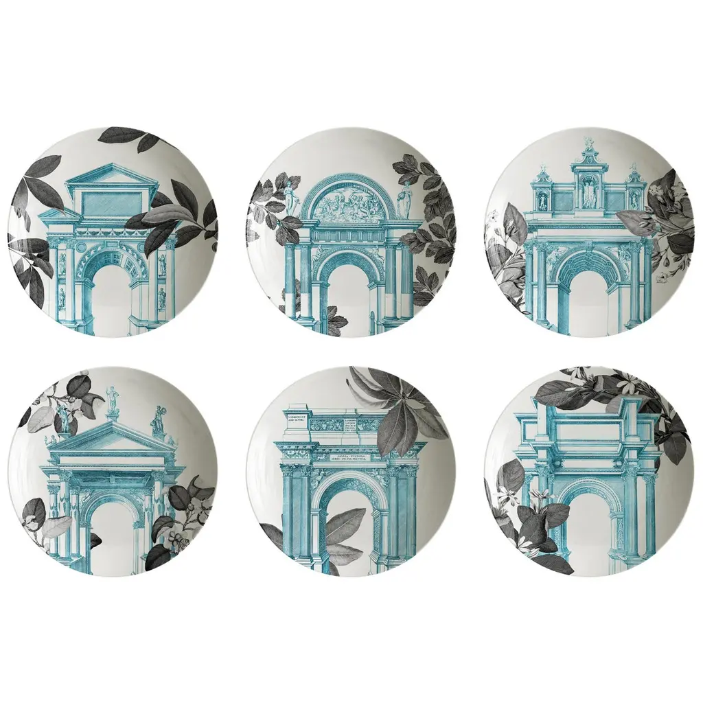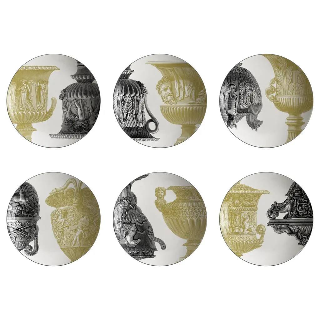 Pompei, Six Contemporary Porcelain Plates With Decorative Design