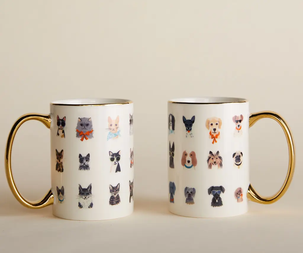 Feline friends rocking their favorite accessories. Celebrate your favorite cat every morning with our Cool Cats mug. Our porcelain mugs feature illustrated designs and a gilded rim and handle to add a little something special to your favorite beverage.
