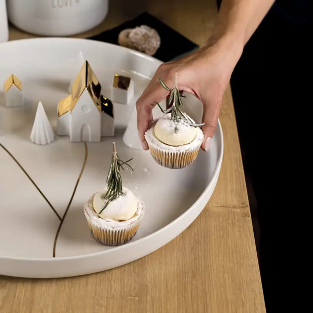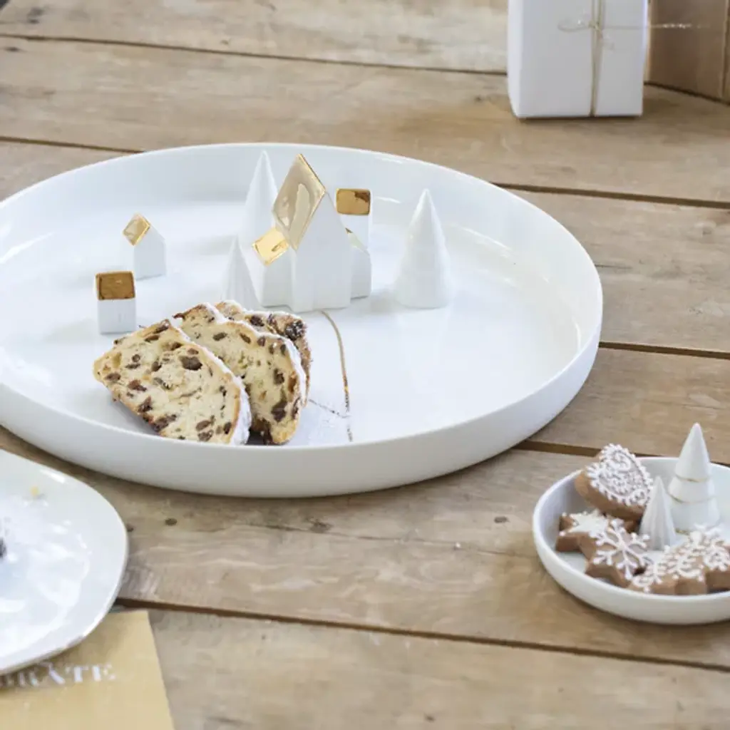 The Porcelain Stories Winter Village Serving Dish from Räder, crafted by Lisa Hampe, is a storyteller's dream. This three-dimensional porcelain tray brings a miniature winter village to life, complete with delicate embossing. It's more than just a serving dish; it's a stage for your holiday treats or a display for candles and trinkets. The intricate details of this piece invite viewers to imagine the tales unfolding in each tiny house. Whether used for festive gatherings or as a year-round decor item, this serving dish promises to become a treasured part of your holiday traditions.