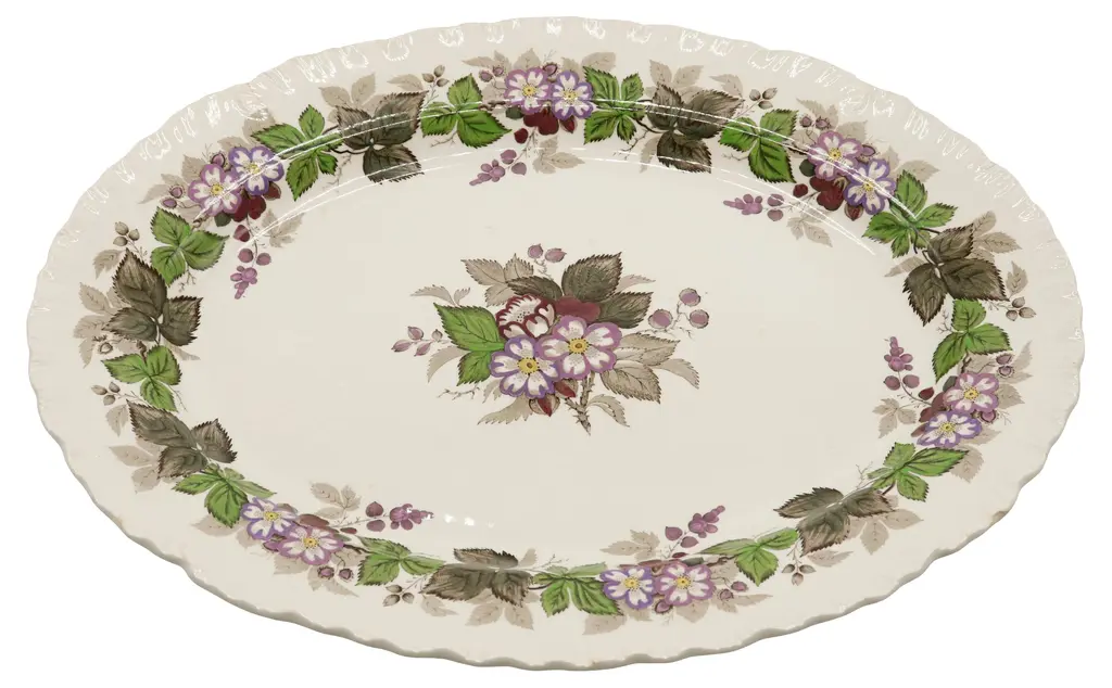 A true British classic, Botanic Garden was designed by the celebrated designer Susan Williams-Ellis using early 19th century illustrations as her inspiration. Botanic Garden's delightful mixture of floral motifs and signature leaf border set a new trend for casual dining when introduced in 1972 and is just as stylish today. Set your table with the blooms from an English garden. Serve your favorite hors d'oeuvres treat on the Deviled Egg Dish.