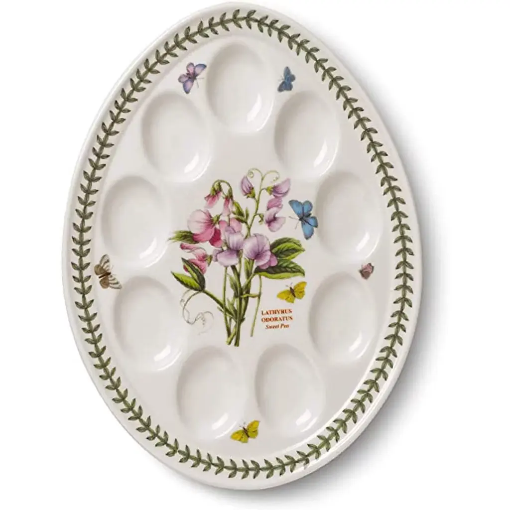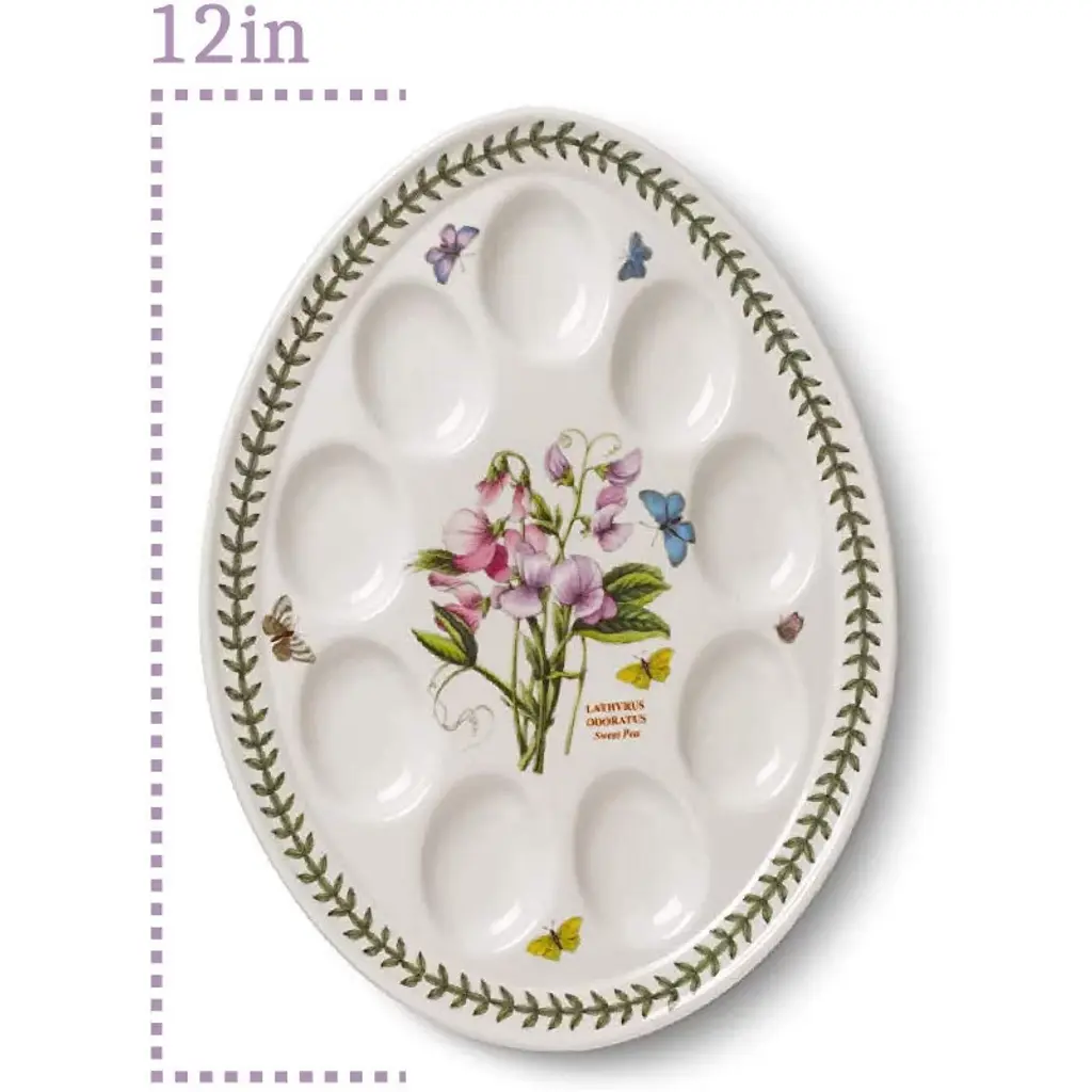 Portmeirion Botanic Garden Porcelain Deviled Egg Plate, Easter Egg Serving Platter - Sweet Pea Motif ,12 Inch