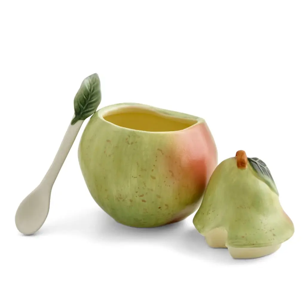 Portmeirion Nature's Bounty Pear Sugar Bowl And Spoon 4"