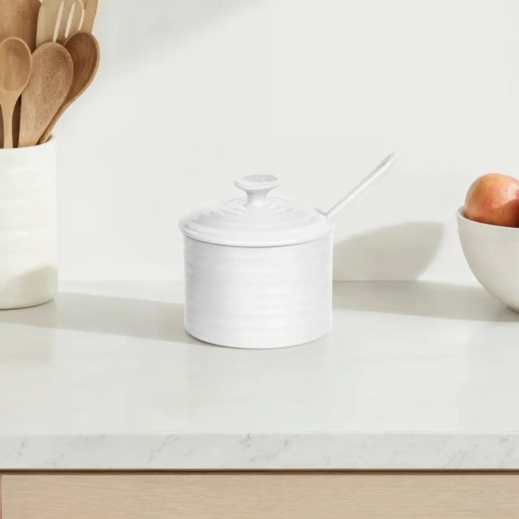 Portmeirion Sophie Conran White Conserve Pot W/spoon 4.5"