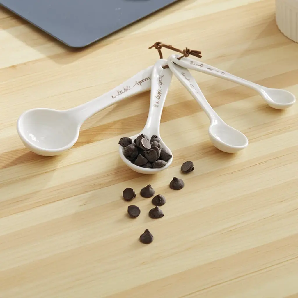 Whip up delicious pancakes or your signature chocolate frosting with these lovely measuring spoons, crafted from white ceramic.