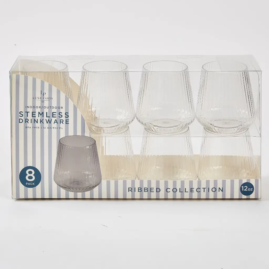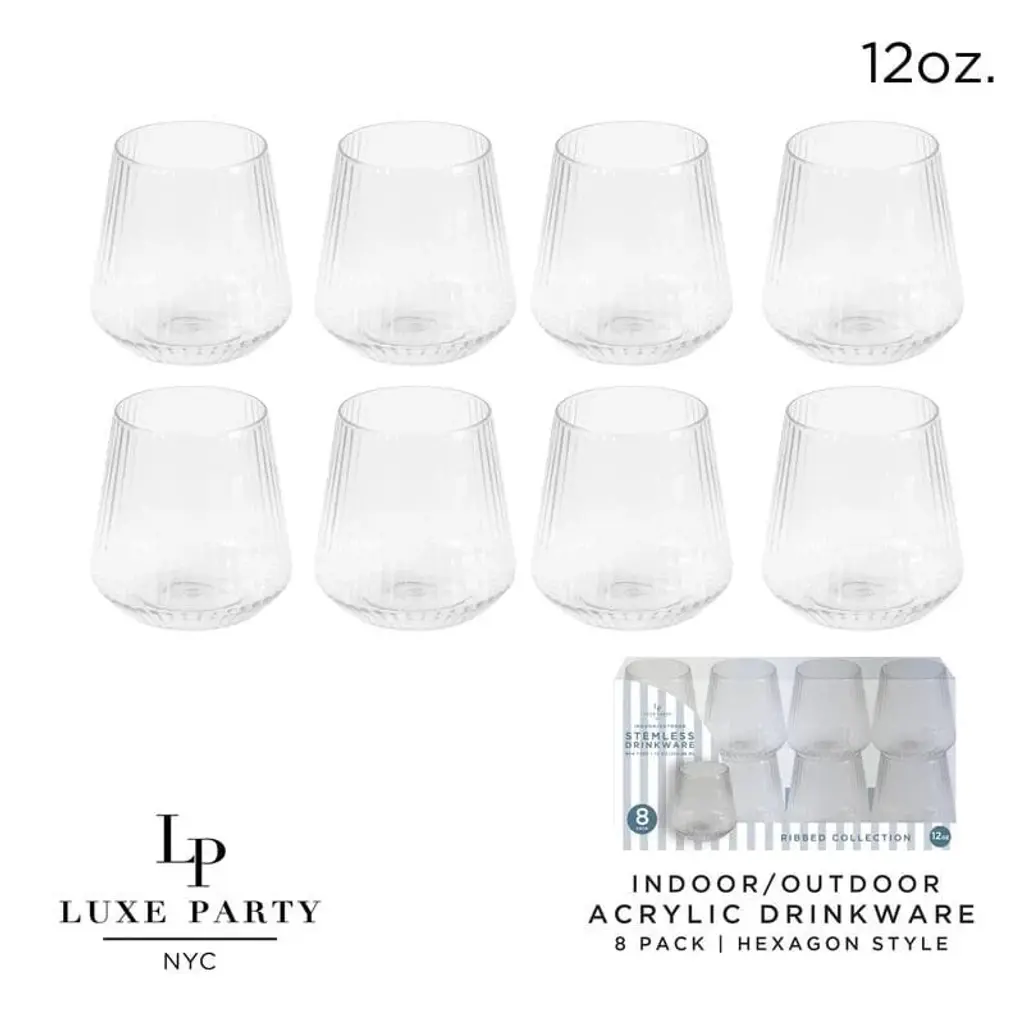 Looking for an economical Wine glass for your wedding reception? How about something that looks and feels elegant for a wine tasting? Posh Setting has the perfect disposable crystal-like Clear plastic wine glasses for your needs. Each cup holds 12 oz. This pack includes 8 stemless plastic wine cups. Made from a durable, unbreakable material, these plastic wine glasses are right at home no matter how upscale your event or party may be. Add elegance to your party with these practical and pretty plastic wine goblets. A must-have for the frequent party hostess! Use them as wine cups, champagne cups, cocktail cups, juice cups, dessert cups, and more. Ideal for bridal showers, engagement parties, bars, nightclubs, weddings, receptions, picnics, catered events, and all occasions."