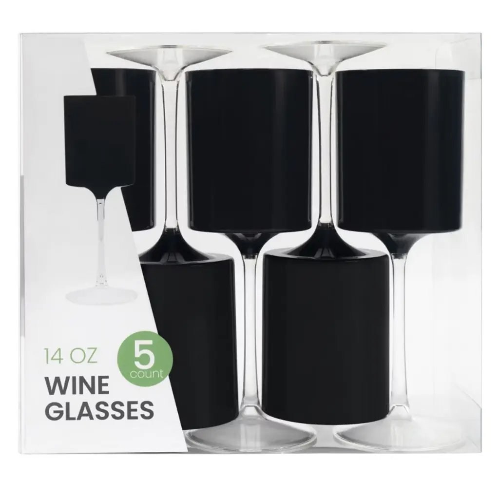 Posh Setting 14 Oz Two Tone Black/clear Plastic Disposable Stemmed Wine Cup - 5 Pack