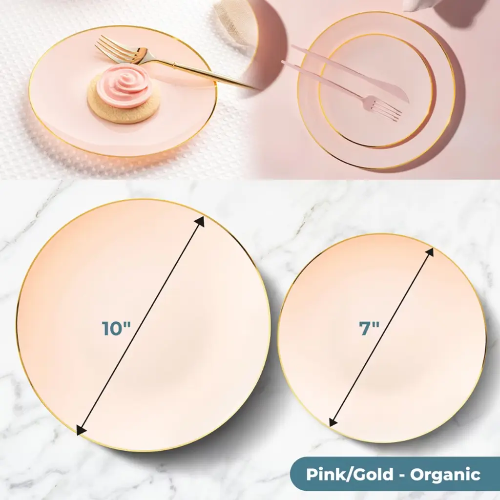 Posh Setting 32 Pack Pink And Gold Round Plastic Dinnerware Set - 16 Guests - Organic